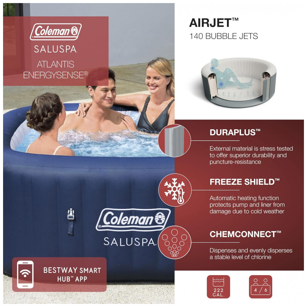 Spa Inflável Hidromassagem para 4 a 6 Pessoas Portátil com 140 Jatos Capa Coleman Hawaii Azul
