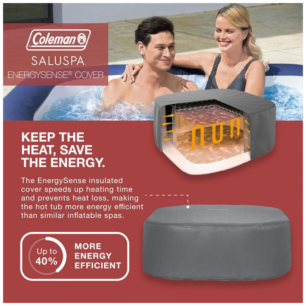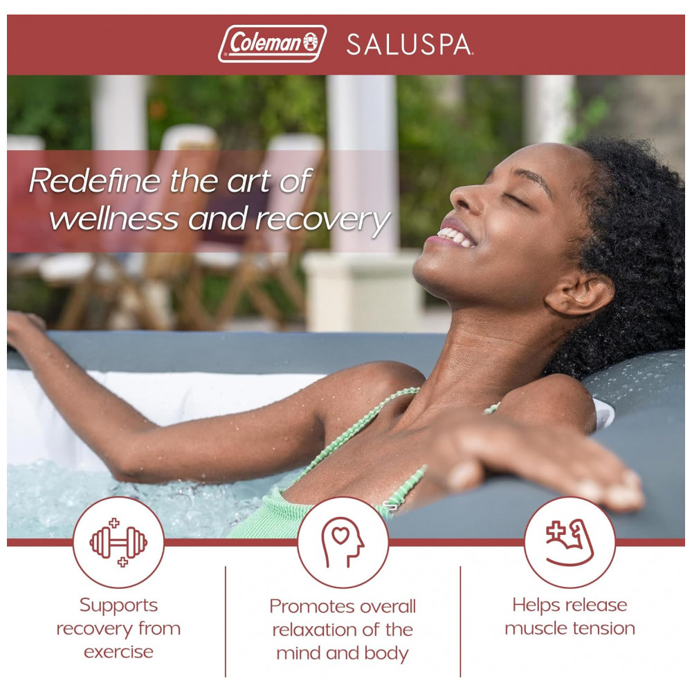 Equipado com uma bomba que infla rapidamente o spa, aquece o, executa a filtragem e controla o sistema de massagem para um spa fácil e conveniente que inclui uma tampa, bomba de spa, flutuador químico, 2 cartuchos de filtro VI, 1 remendo de reparo e um cabo de 6 pés de comprimento.