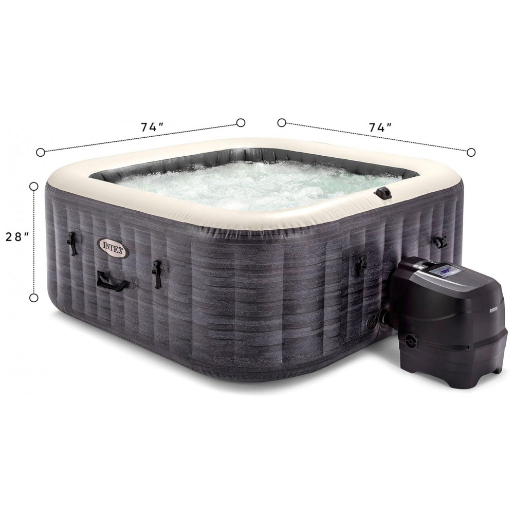 O spa com banheira de hidromassagem quadrada, portátil e inflável para 4 pessoas permite que você relaxe com estilo com o toque de um botão.