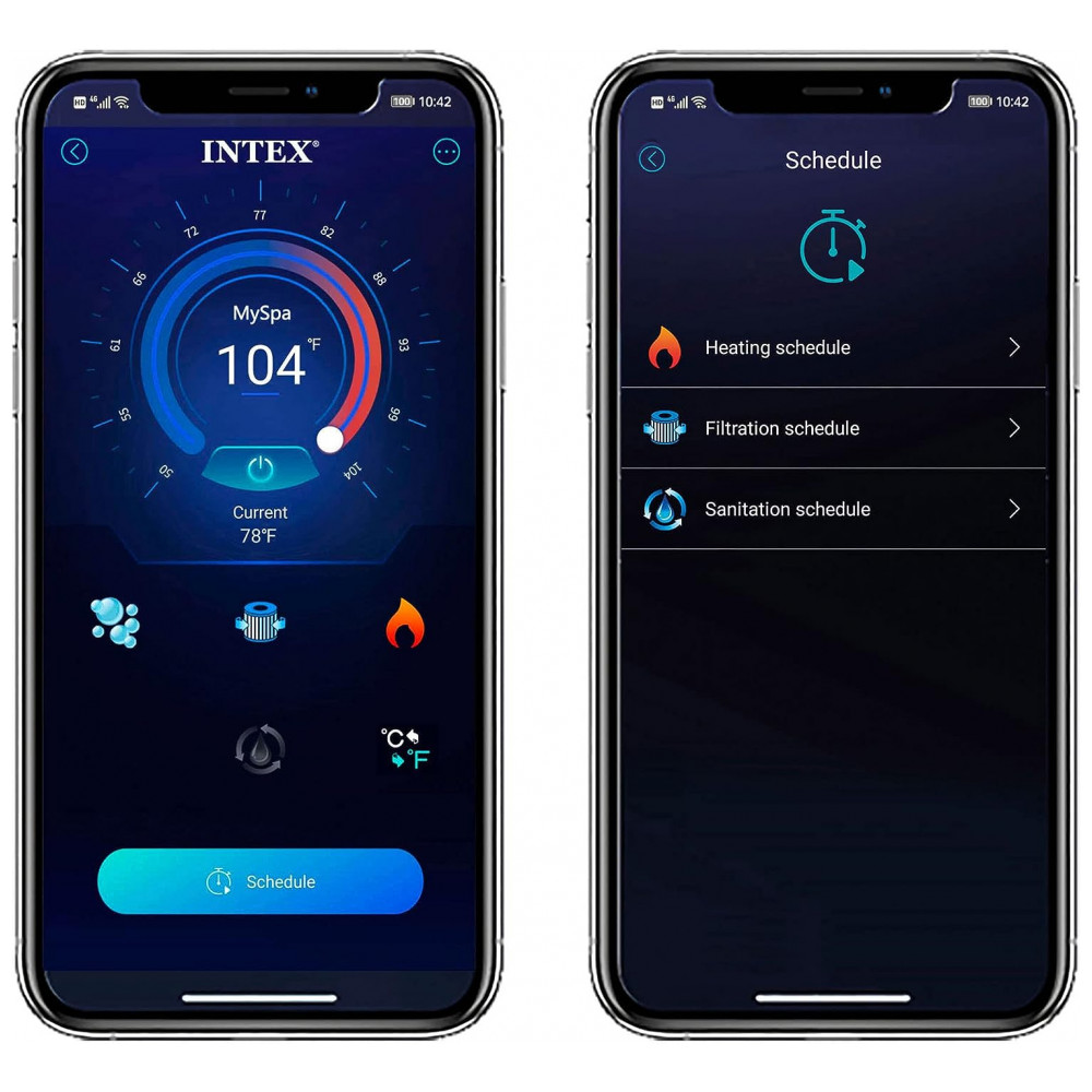 Painel de controle removível, sem fio e fácil de usar Aplicativo Intex Link Spa Management para uso remoto a partir do seu dispositivo inteligente.