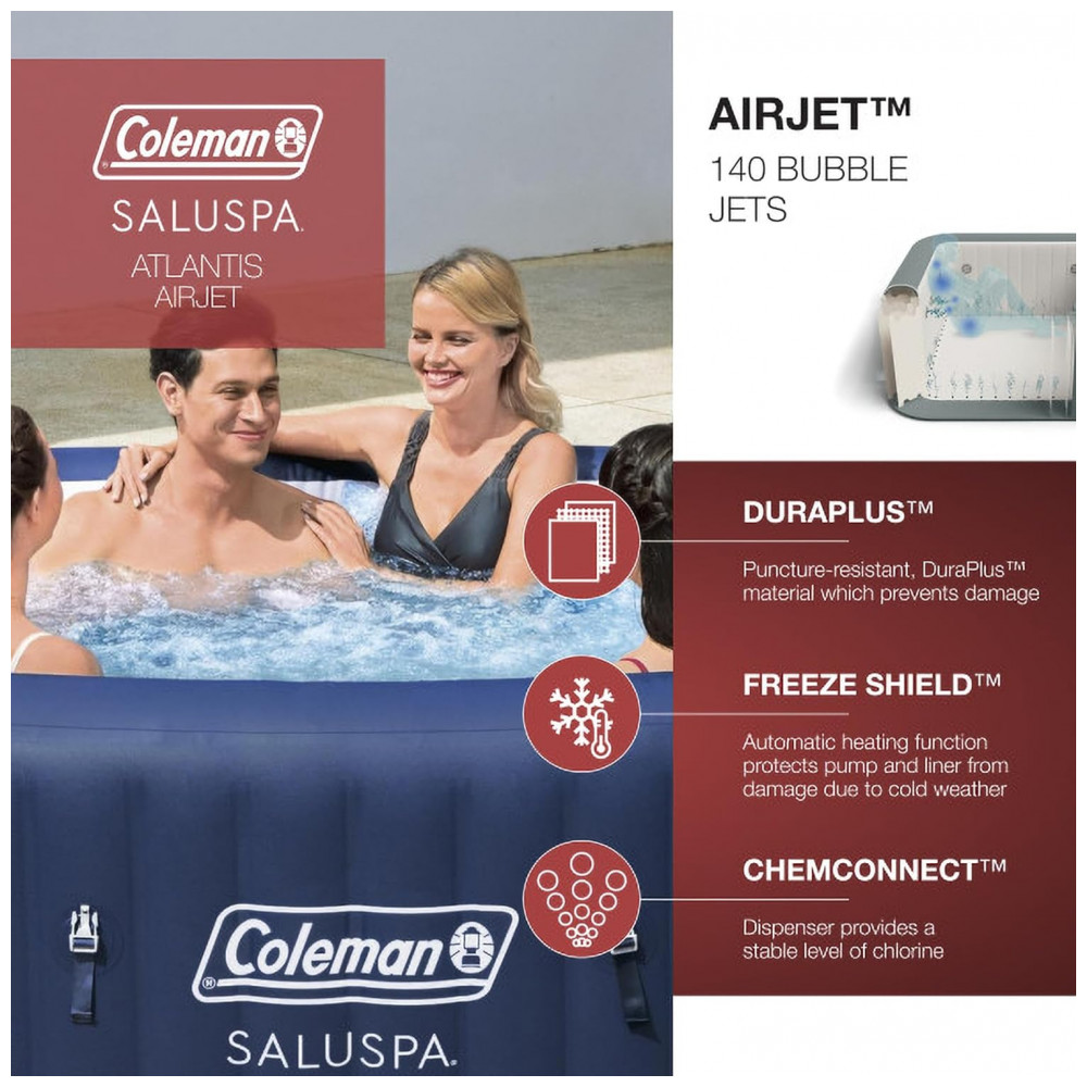 Spa Inflável Hidromassagem para 6 Pessoas com 140 Jatos e Tampa Coleman 90454 Atlantis Azul
