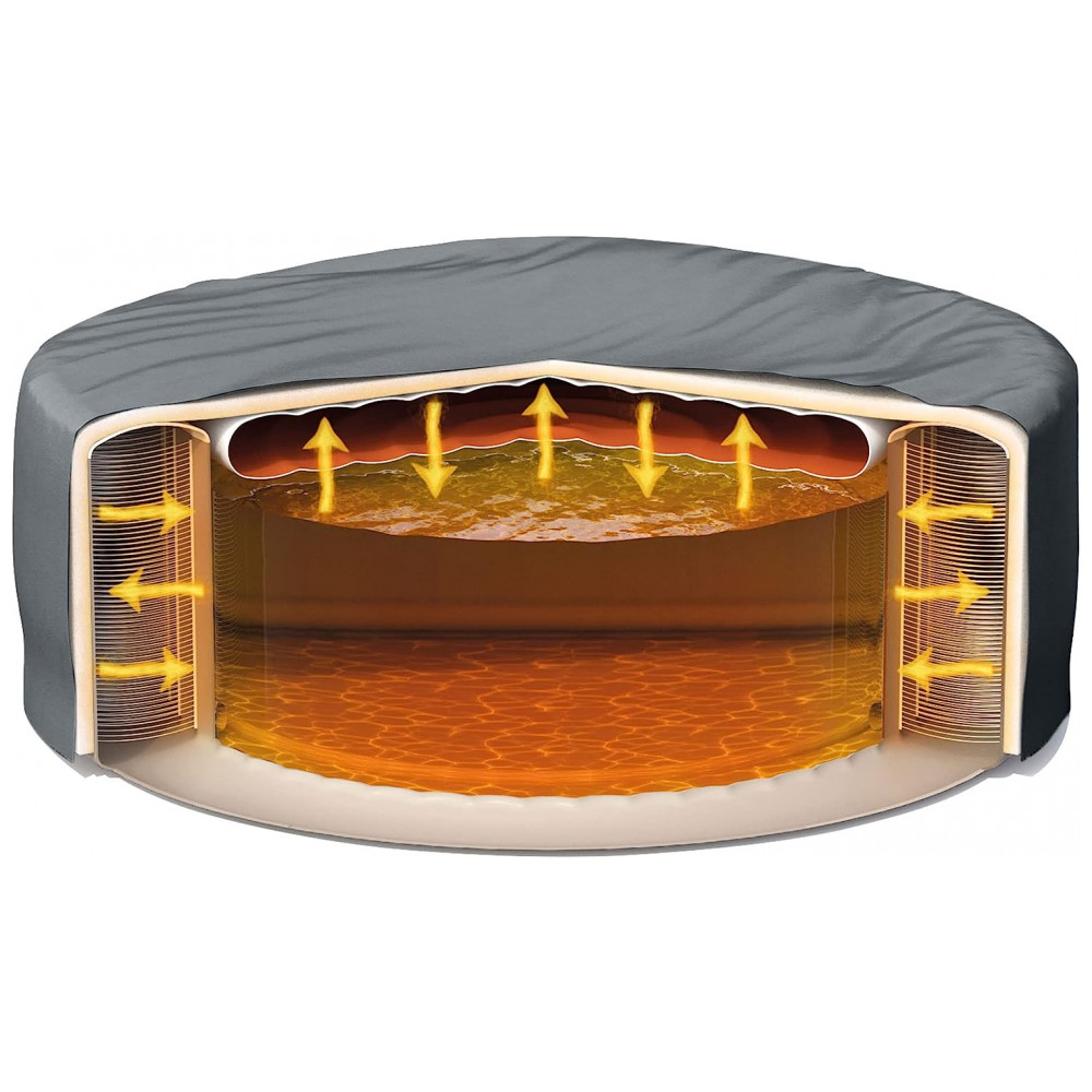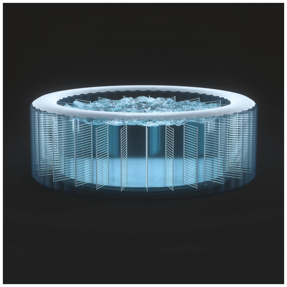 A banheira de hidromassagem redonda inflável para 6 pessoas, de aproximadamente por , possui 2 apoios de cabeça, permitindo que você relaxe com estilo com o toque de um botão.