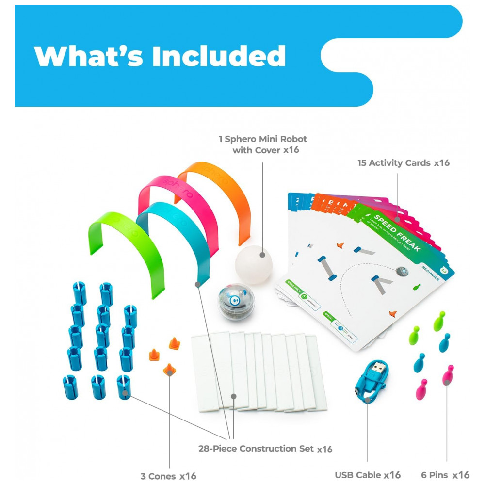 Sphero Mini Education Kit 16-Pack – Kit Educacional com 16 Robôs Programáveis Acessórios e Cartões para Aprendizagem STEM em Sala de Aula