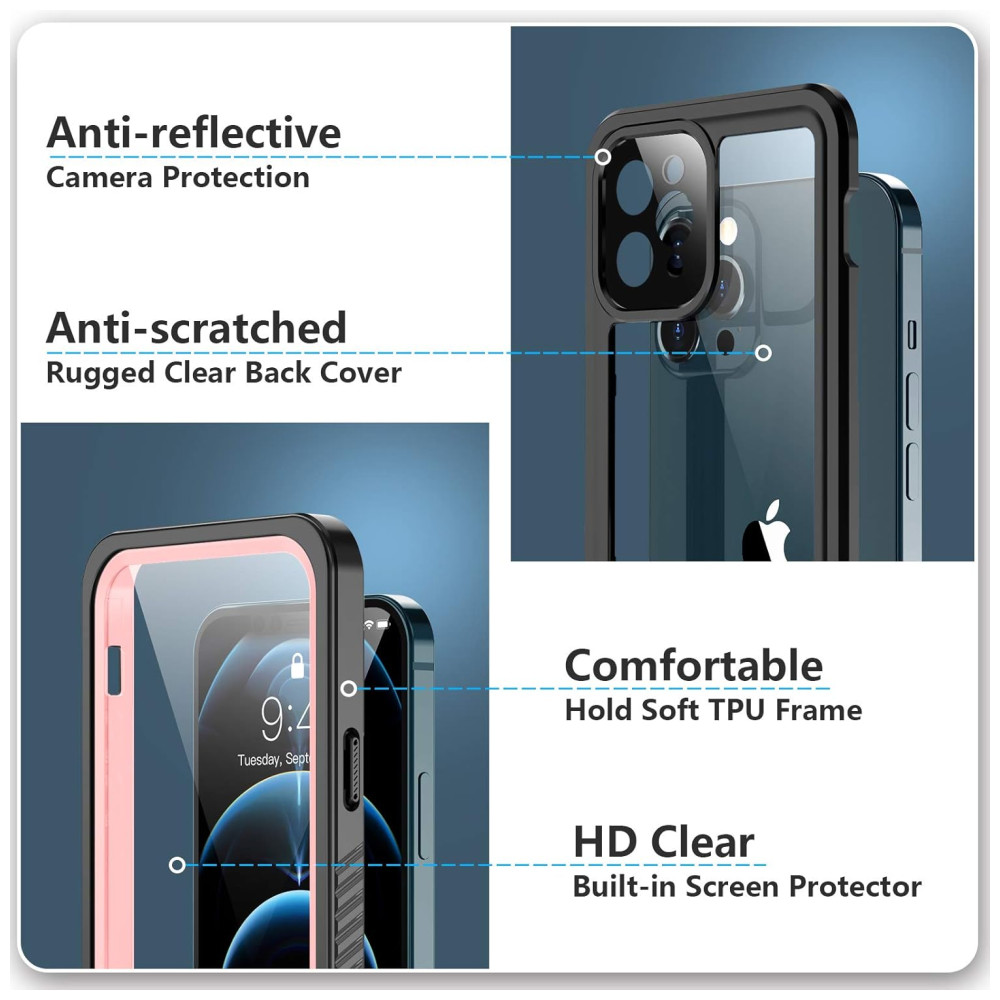 SPIDERCASE Capinha Compatível com iPhone 12 pro Max a Prova dÁgua com Vidro Temperado Rosa