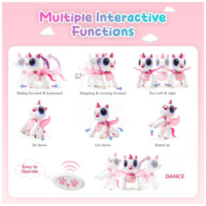 SRobô Unicórnio Infantil SGILE Controle Remoto Recarrregável Rosa Com Programação Gestual e Movimentos Diversos Modelo 23019 Programação STEM