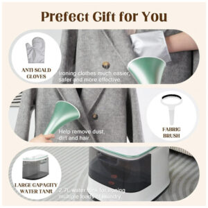O Vaporizador de Roupas de 2000W é profissional e potente, aquecendo em 35 segundos para 90 minutos de vapor contínuo. Com 40g/min de vapor a até 209°F, ele penetra profundamente nas fibras, suavizando efetivamente rugas teimosas em roupas, cortinas, estofados e muito mais. Design 2 em 1 permite mudar entre vaporização vertical e horizontal, com controle preciso e delicado para processamento de camisas e calças. Com 10 níveis de vapor ajustáveis, adequado para tecidos como seda, algodão, linho, lã, cortinas e denim. Reservatório de água transparente de 2.7L para menos recargas. Haste dupla ajustável proporciona força uniforme. Ideal para remover rugas profundas sem danificar as roupas. Perfeito para diversos tipos de tecido.