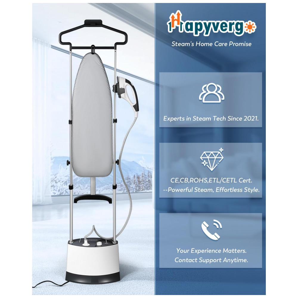Steamer Passadeira e Vaporizador Comercial de Roupas Vertical Hapyvergo 1500W
