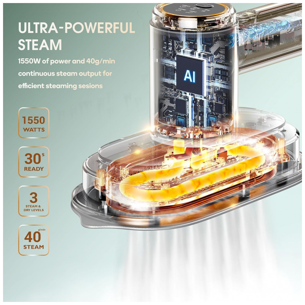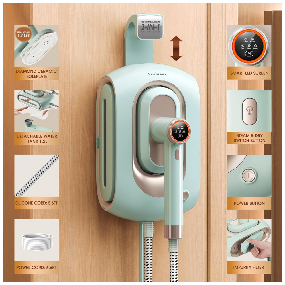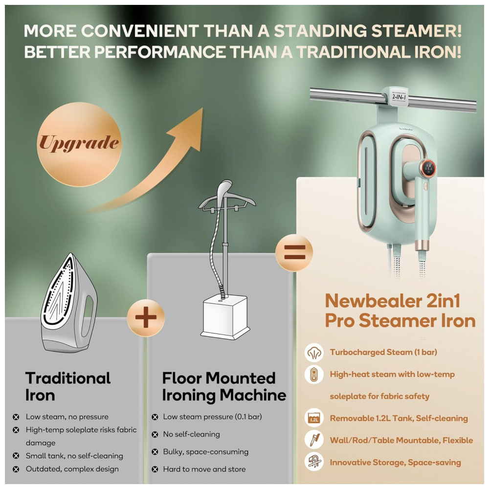 SteamerPassadeira e Vaporizador 2 em 1 Newbealer Pro 1550W Vapor de 3 Níveis Turbo e 3 Modos de Calor Seco para Roupas
