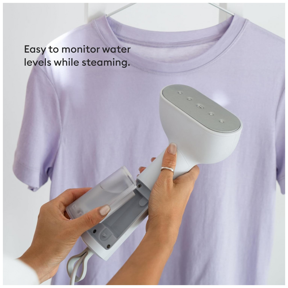 O Vaporizador de Roupas Portátil Steamery Cirrus X é potente e suave, podendo ser usado em todos os tipos de tecidos, desde seda delicada até denim pesado, garantindo que suas roupas não sejam danificadas. Com um design escandinavo moderno e minimalista, inclui um prático gancho para pendurar, facilitando o armazenamento e pronto para uso. Leve e prático, possui um tanque de água transparente de 85 ml destacável e leve, com uma saída de vapor de 20 g/min, permitindo vaporizar um conjunto inteiro de roupas sem a necessidade de reabastecimento. Pronto para uso em apenas 20 segundos, ideal para manhãs agitadas. Seu design compacto o torna perfeito para uso doméstico ou viagens, sendo um ótimo vaporizador de roupas para estar sempre pronto. Inclui cabo de 2 m, pesa 1 kg, 1200W, plugue US, 110-120V.