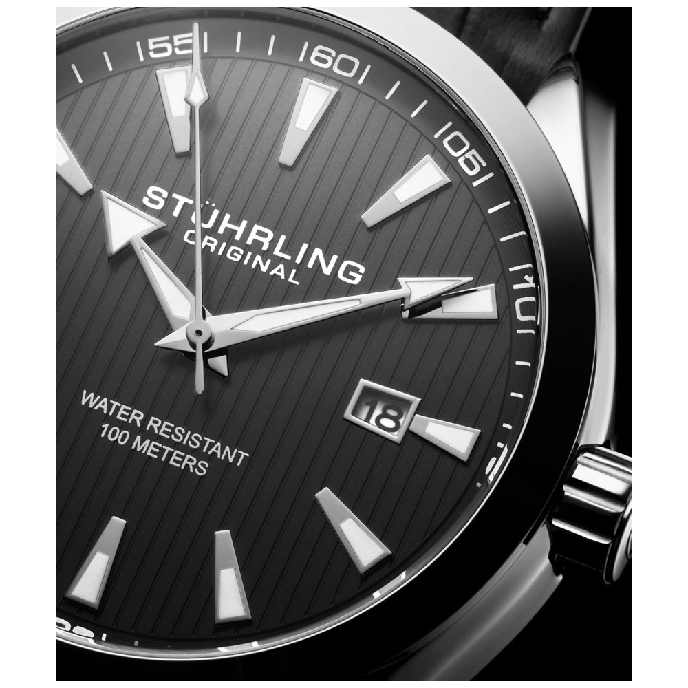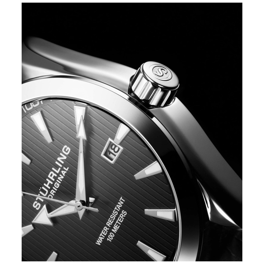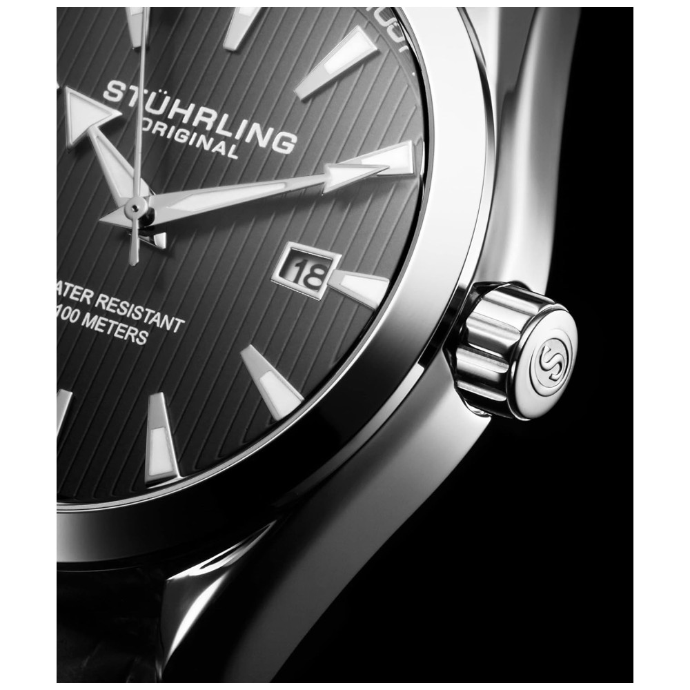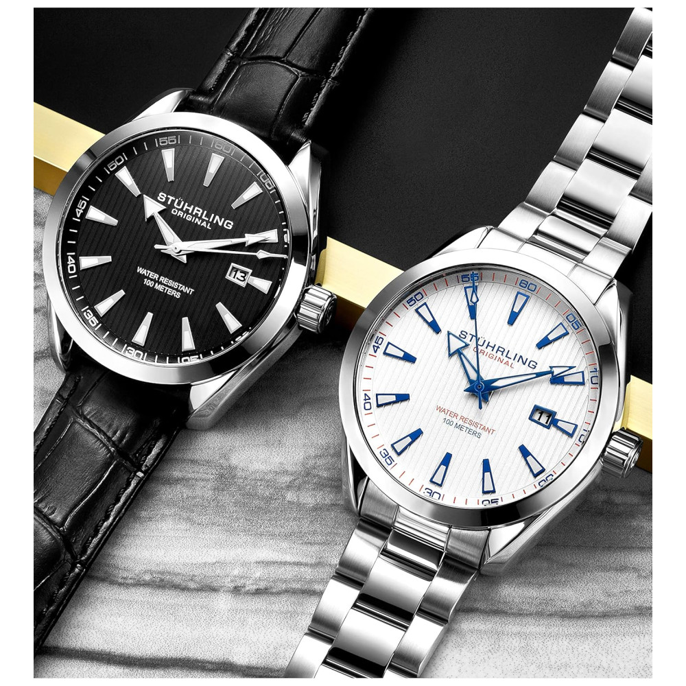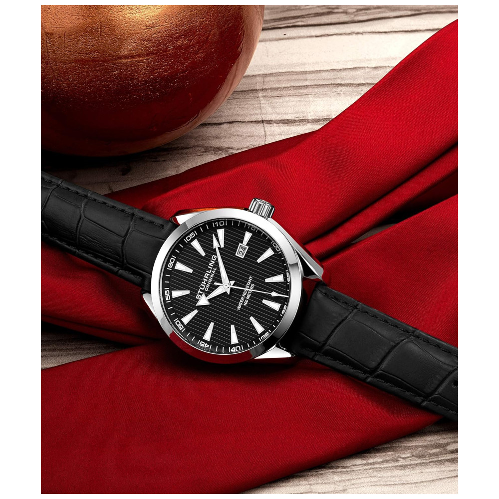 Stuhrling masculino relógio analógico mostrador com data pulseira de couro de bezerro ou pulseira de aço inoxidável 3953 relógios para homens coleção