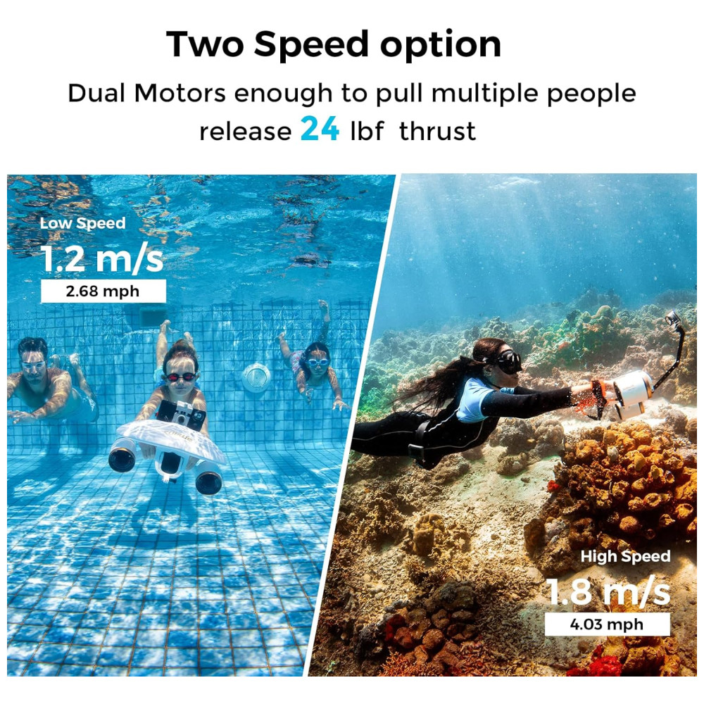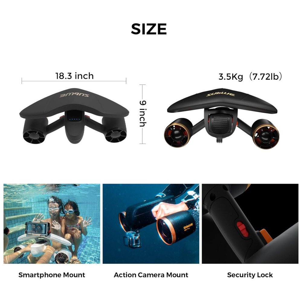 Sublue Mix Pro – Scooter Subaquática Dual Motor 2 em 1 60 Min de Autonomia 40m de Profundidade Suporte Câmera e Alerta Bateria.