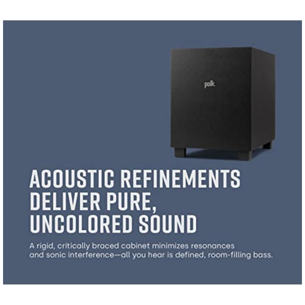 O Polk Audio Monitor XT10 é um subwoofer ativo compacto para uso em sistemas de home theater e som estéreo residencial, projetado para complementar caixas da linha Monitor XT em configurações 5.1 e superiores. O modelo utiliza um woofer de 25 cm de alto curso com amplificação interna classe D de 100 W, capaz de reproduzir graves profundos em volumes elevados, com extensão até faixas próximas de 24 Hz para uso em filmes, jogos e música.