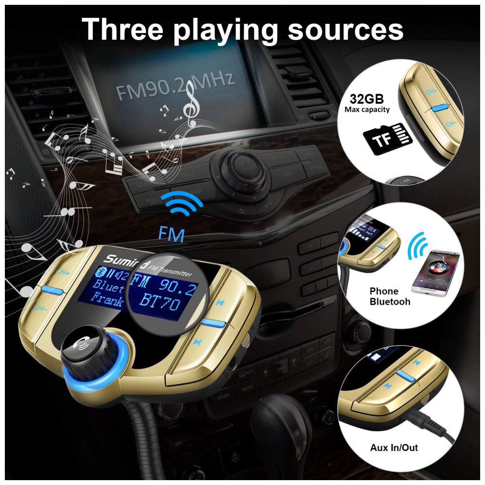Ampla compatibilidade este adaptador de rádio é compatível com iPhone, iPad, iPod, tablet, smartphones, você pode transferir música nesses dispositivos para o áudio do carro via cabo de áudio de 3, Suporta cartão TF , Micro SD em formato FAT até 32G Suporte A2DP Suporte ao formato MP3 , WMA Também suporta saída AUX