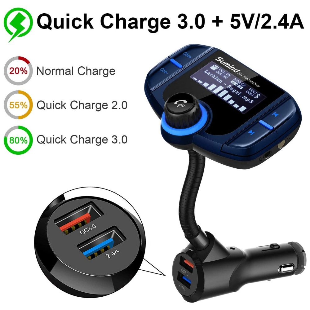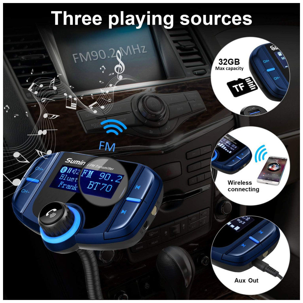 Sumind Receptor Transmissor FM Veicular Bluetooth USB AUX Azul