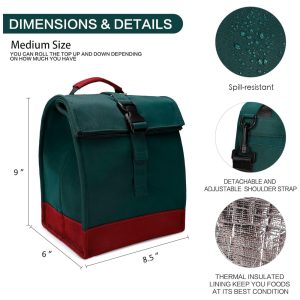 Desempenho de última geração e durabilidade desempenho excelente e máximo vem de nosso design com temperatura controlada. Nossos topos enroláveis com isolamento de camada tripla vedam perfeitamente no ar frio e quente, mantendo seus alimentos frescos por várias horas. Combinado com tecido de náilon de alta qualidade, o exterior desta lancheira feminina resiste a qualquer ambiente úmido e também facilita a limpeza.