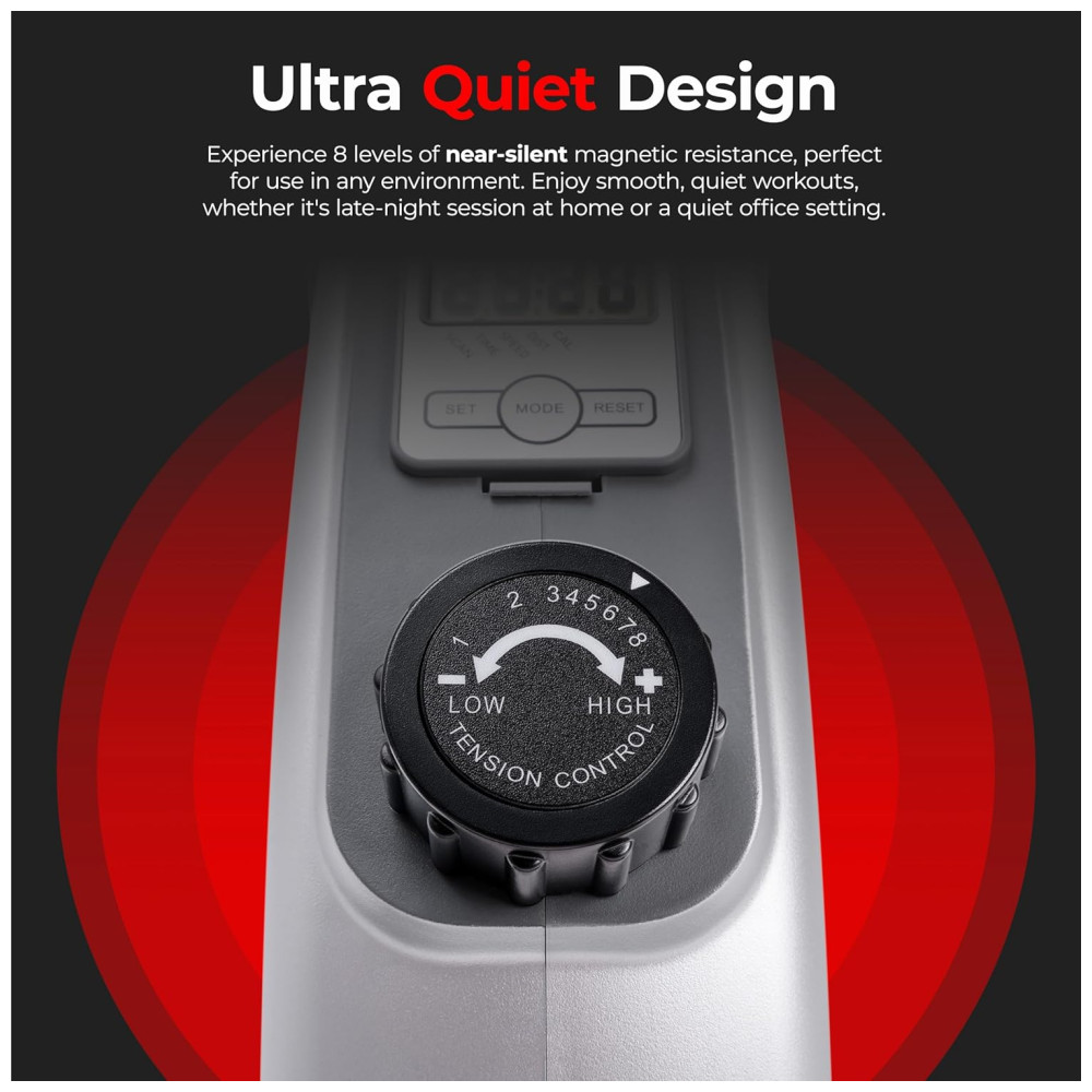 MAGNÉTICO 8 níveis de resistência magnética fornecem variação aos seus exercícios para que você possa alternar seus treinos sob demanda.