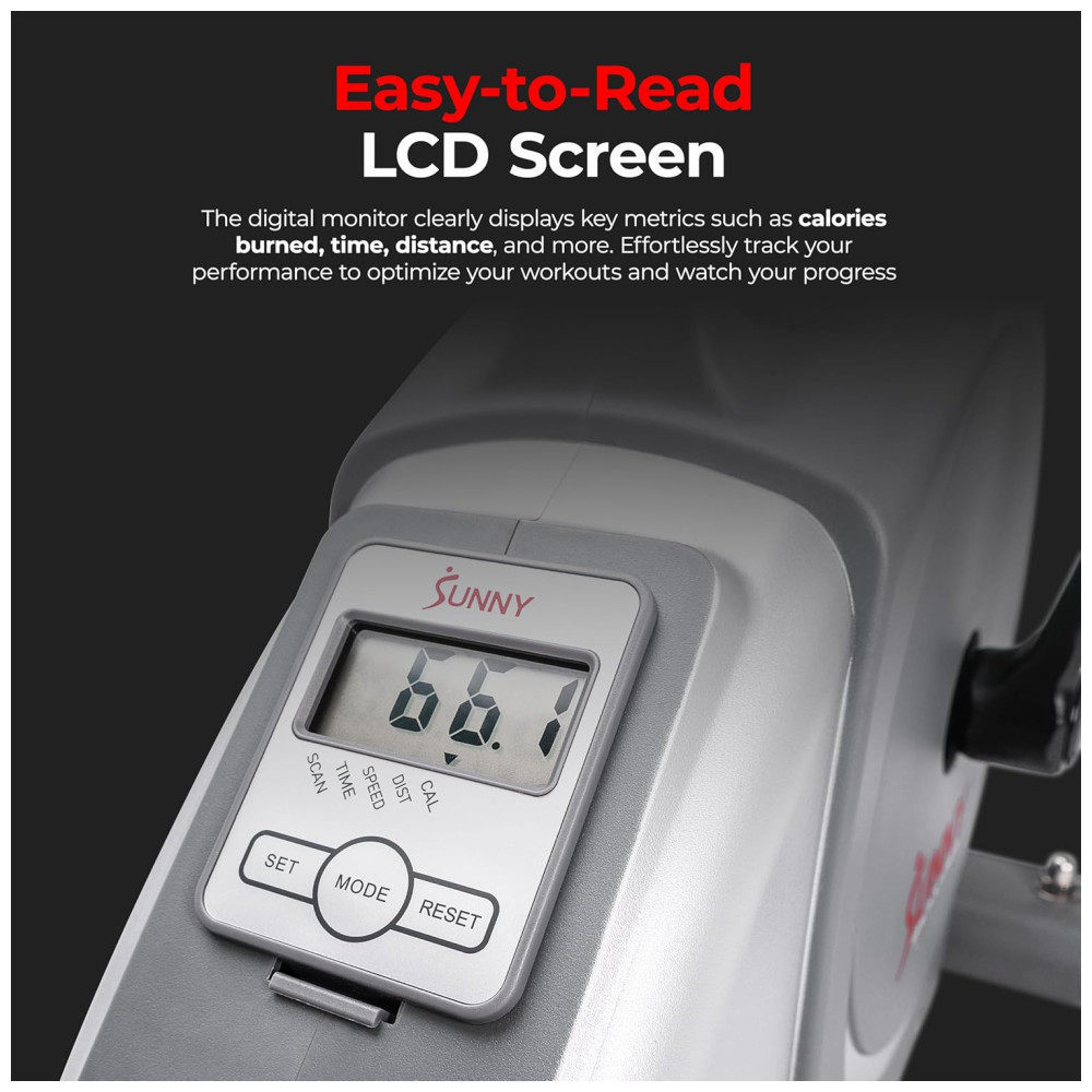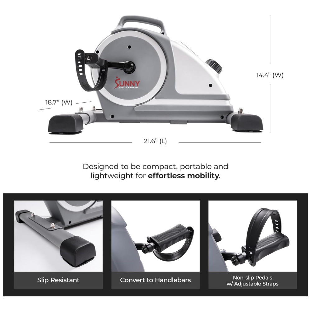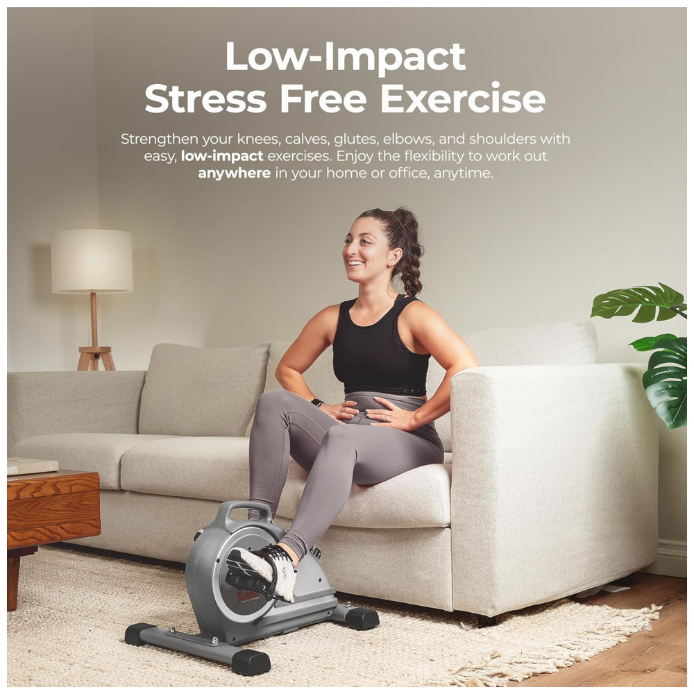 Sunny Health Fitness SF B020026 Mini Bicicleta Ergométrica Ideal Para Idosos e Treino de Braço Perna com Painel Digital e 8 Níveis de Resistência Cinza
