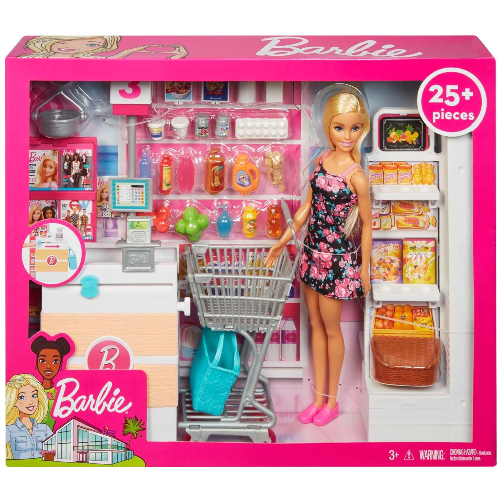 Super da Barbie com 25 Acessórios Temáticos de Mercearia Incluindo Comida Prateleiras de Balcão