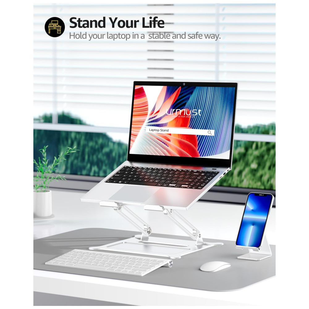 Suporte Ergonômico Laptop Ajustável Até 40Cm URMUST UMCA2020003 Prateado