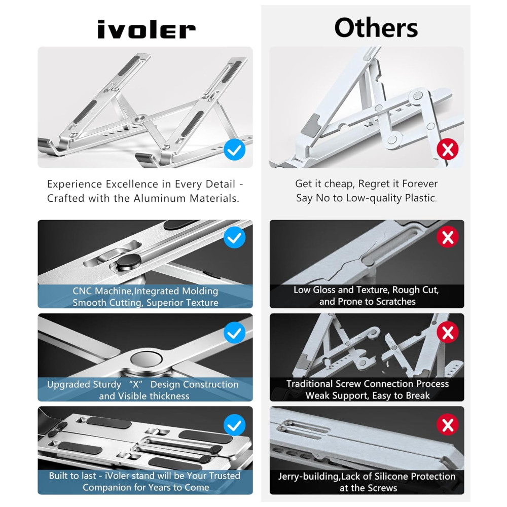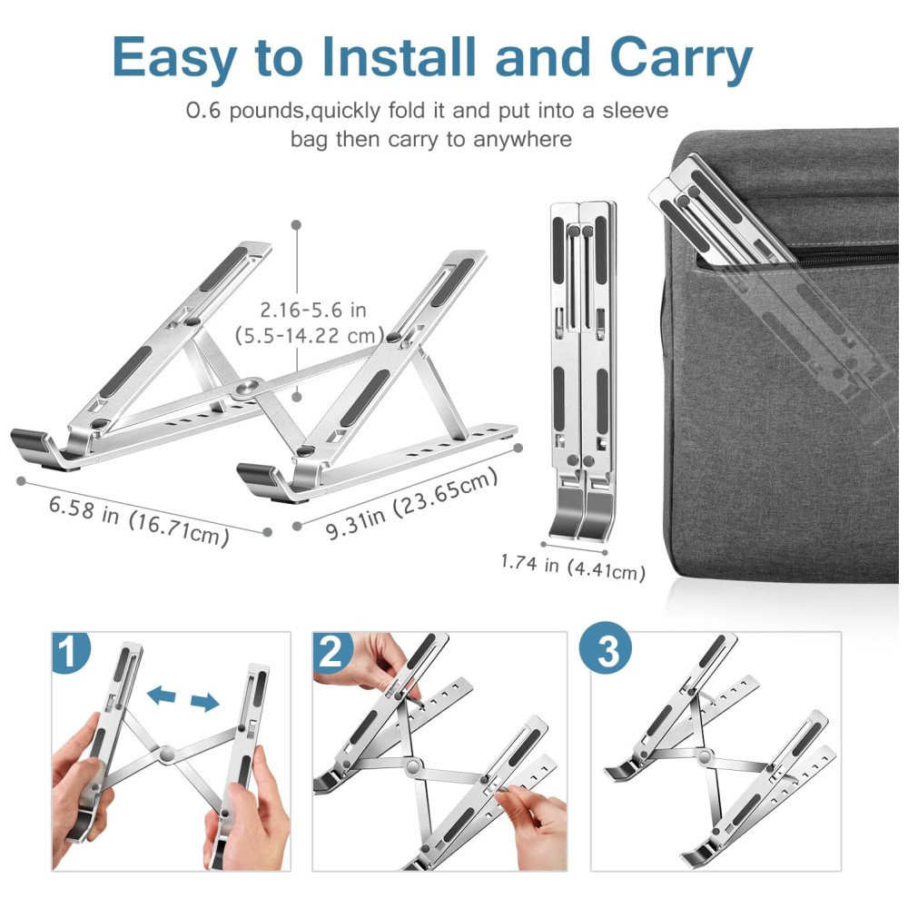 Suporte Ergonômico Laptop Ajustável Dobrável 25 40Cm IVOLER AMUSA20710001 Prateado