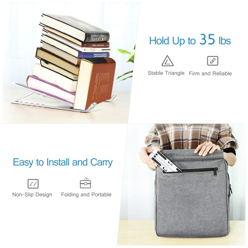 COMPACTO e PORTÁTIL Design dobrável portátil criativo, o suporte para laptop pode ser dobrado no tamanho de 24 x 4cm e com a bolsa de zenamento portátil para facilitar o transporte.