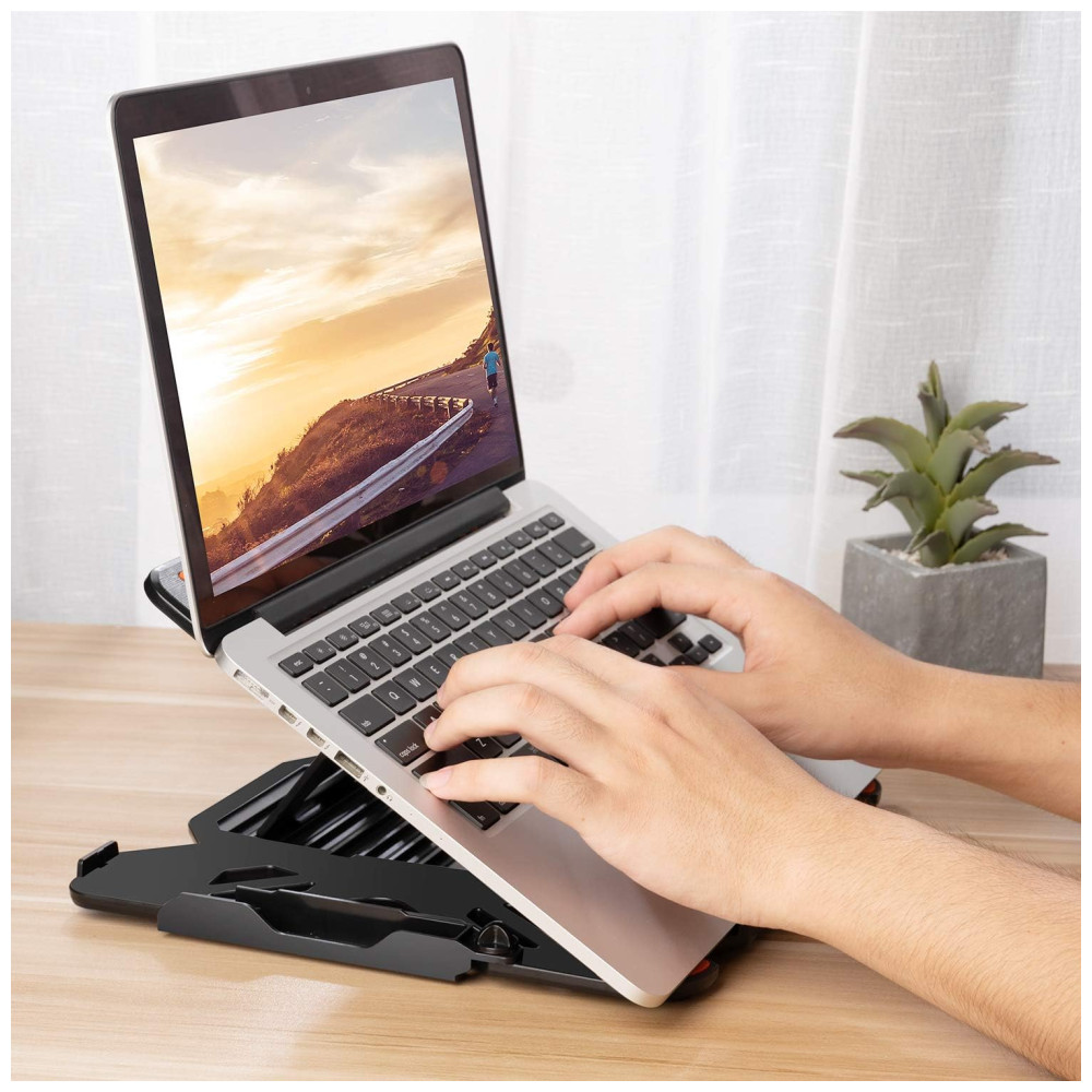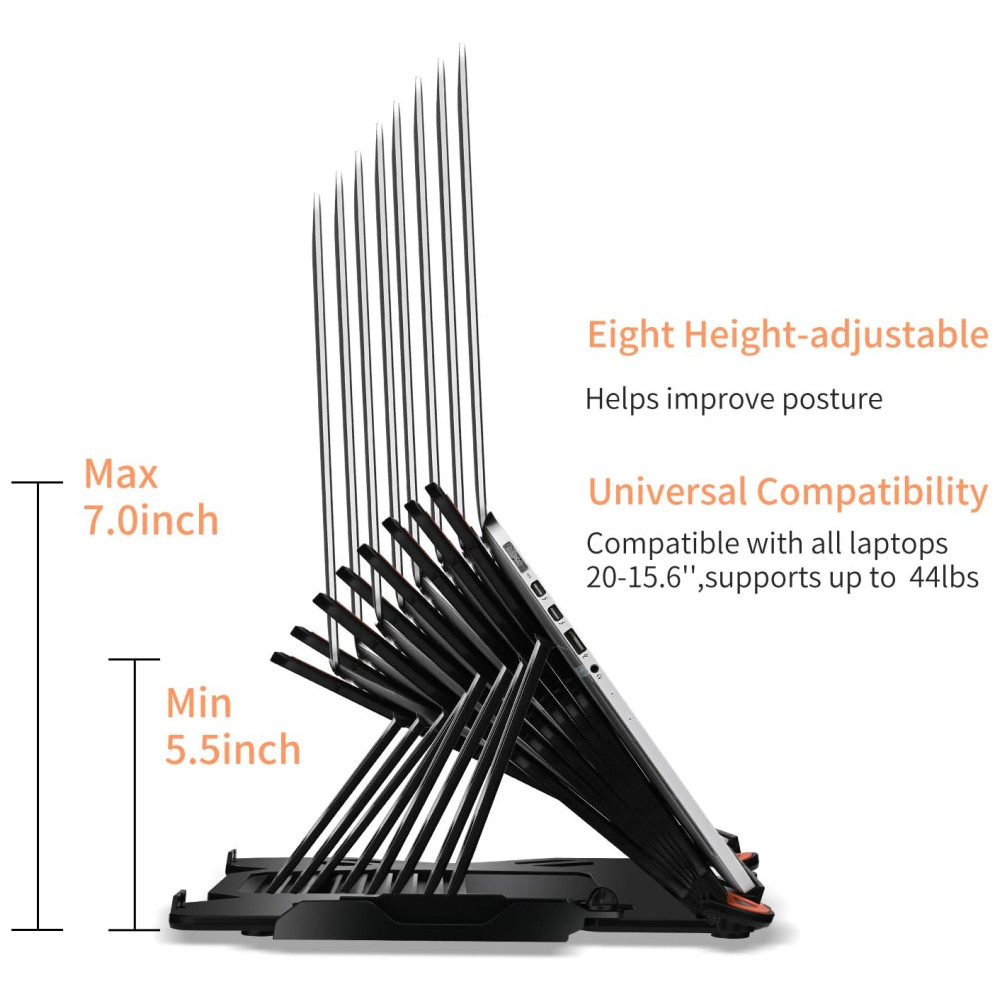 Durável feito de ABS leve com almofadas de superfície de borracha antideslizantes para manter o laptop no lugar, forte e confiável, difícil de desbotar. Compatível com todos os laptops de 25 a 40cm, durável o suficiente para suportar até 20kg.