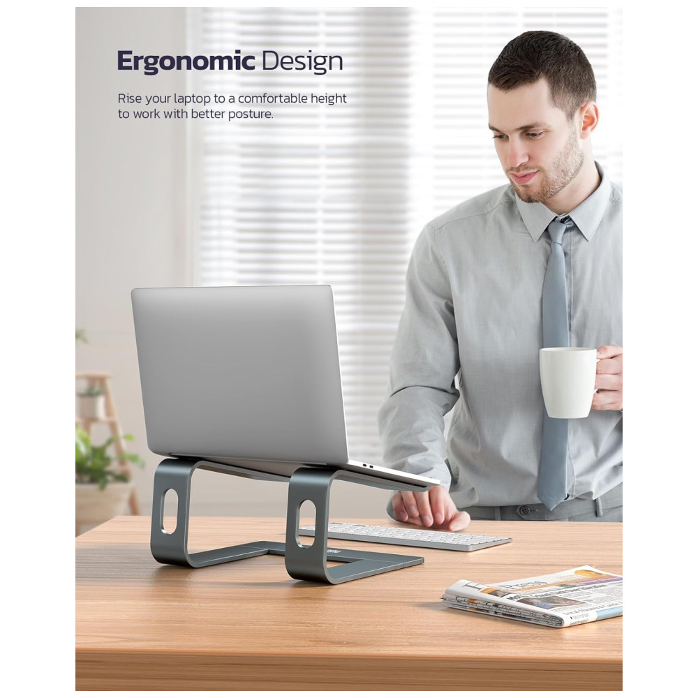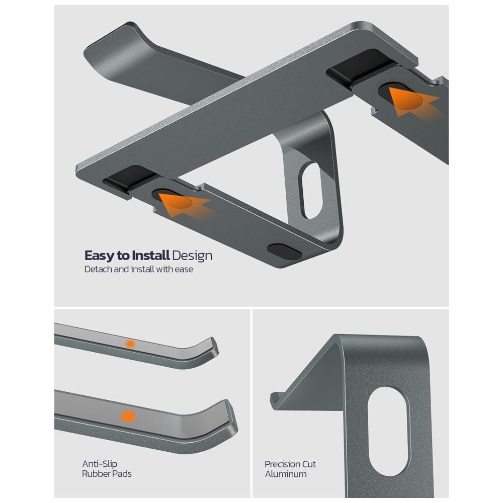 A série Nulaxy Stands foi projetada para a sua vida diária, estamos estabelecendo a família de Stand que inclui suporte para telefone celular, suporte para tablet, suporte para laptop e mais s designs estão chegando. Elegante Simples Elegante Robusto Você já se sentou na frente de seu laptop, trabalhando por longas horas, sentindo dores no pescoço e nas costas Quer se livrar da má postura ao usar o laptop Este é provavelmente o suporte para laptop que você está procurando. Você nunca saberá como precisa disso até que seja o proprietário. O suporte do laptop Nulaxy C3 inclina o laptop ligeiramente para a frente, o que aproxima a tela para uma visualização mais nítida e confortável. Com o laptop levantado e um teclado externo e mouse no lugar, o suporte elegante transforma qualquer escrivaninha ou mesa em um espaço de trabalho ergonômico ideal para usuários de laptop. Liga de alumínio premium e design aberto permite fluxo de ar e resfriamento para laptop. Aumenta a altura da tela do laptop para 6 polegadas para melhor ergonomia. O acabamento de precisão em alumínio oferece aparência e toque superiores. Robusto e forte o suficiente para suportar laptops de até 4 kg de peso. Melhor ergonomia O suporte para laptop Nulaxy C3 eleva a altura da tela do seu laptop para 6 polegadas para melhor ergonomia, você pode manter seu laptop a uma distância adequada de seus olhos. E também conserte ergonomicamente sua postura enquanto trabalha no laptop. Almofadas de silicone Grandes almofadas de silicone nas partes superior e inferior mantêm o seu laptop no lugar e protegem no ao máximo de quaisquer arranhões indesejados. Melhor dissipação de calor, a inclinação para frente e o design de estilo aberto permitem o melhor fluxo de ar para manter o seu laptop mais frio. Instalação simples Instalação em apenas uma etapa, basta inserir A e B em C e fixá los no lugar. Clique aqui Dispositivos compatíveis Laptops de até 44cm de até 44cm de altura ajustável, Sim Ângulo ajustável Não Rolamento de carga máxima 20kg. Elevar a altura da tela do laptop 8cm a 53cm