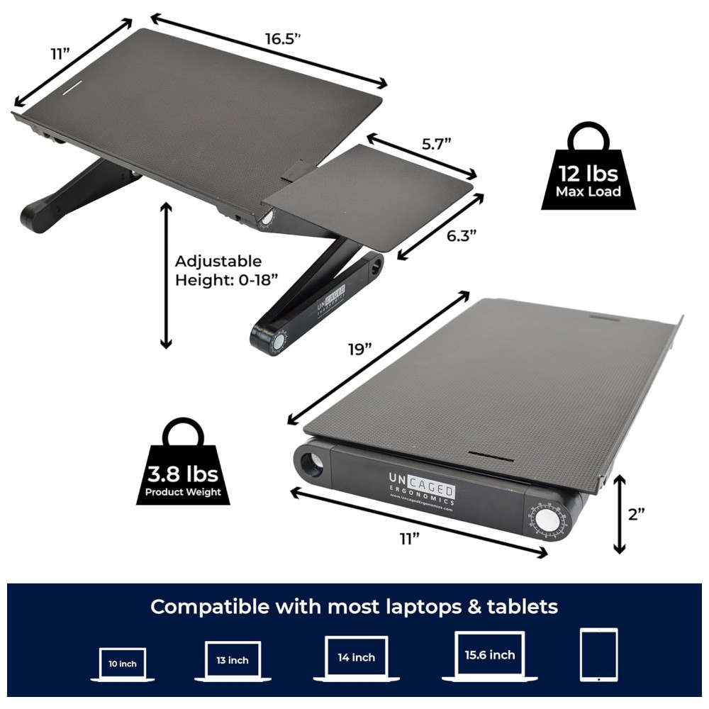 Suporte Ergonômico Laptop WorkEZ Ajustável Dobrável UNCAGED ERGONOMICS WEBLS b Preto