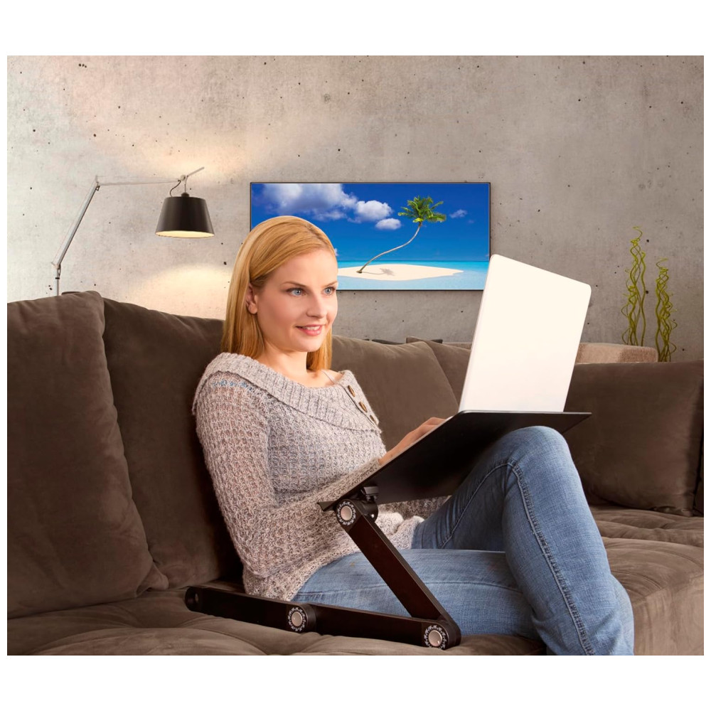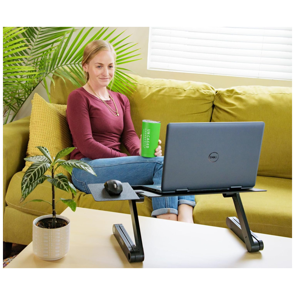 Segure laptops com mais conforto em qualquer lugar com o suporte ergonômico WorkEZ Best para laptop e mesa de colo. Este suporte de alumínio leve e durável dissipa o calor para resfriar laptops e tem um painel de inclinação ajustável para reduzir o brilho da tela. As pernas do suporte dobrável para laptop posicionam os laptops para cima e para baixo em quase qualquer altura de até 46cm. Um mouse pad espaçoso conecta se rapidamente à direita ou à esquerda e é facilmente removível. Onde você pode usar o WorkEZ Best Laptop Stand Lap Desk para melhorar sua postura, saúde e conforto de computação LAPTOP LAP DESK PARA CAMA E SOFÁ Como uma mesa de colo ergonômica, WorkEZ BEST desliza sobre seu colo na cama ou no sofá segurando seu laptop longe do colo, mantendo o fresco e dando a você a liberdade de se esticar e se mover . RISER SENTADO PARA LAPTOP este suporte para laptop de mesa ajusta se em altura e inclinação para ajudá lo a se sentar ereto e melhorar sua postura. MESA PARA LAPTOP STANDING transforme qualquer mesa em pé com este elevador de mesa de altura ajustável simples e acessível projetado para pessoas que trabalham diretamente em seus laptops Principais recursos do WorkEZ Best Adjustable Laptop Stand e Lap Desk Elevador de altura ajustável para laptop Elevar laptops para Praticamente qualquer altura de 5 46cm Suporte para laptop com inclinação ajustável O painel do suporte para laptop WorkEZ Best gira 180 graus, travando a cada 15 reduz o brilho e oferece ajuste de altura ajustado Suporte para laptop leve de alumínio pesando menos de 2kg, este portátil. O suporte ergonômico para laptop é fácil de levar com você. Suporte de resfriamento ergonômico para laptop o painel de alumínio do suporte para laptop WorkEZ Best dissipa o calor para resfriar laptops Mesa ajustável para laptop com mouse pad o mouse pad ambidestro se conecta rapidamente a qualquer um dos lados do painel. ESPECIFICAÇÕES 1. Tamanho do painel aprox. 46×28 2. Material alumínio 3. Peso aprox. 2kg 4. Dimensões externas 48 x 28 x 5 5. Segmentos da perna 3 6. Largura entre os segmentos da perna 39, 42, 45 7. Cor preto