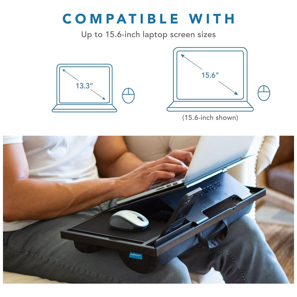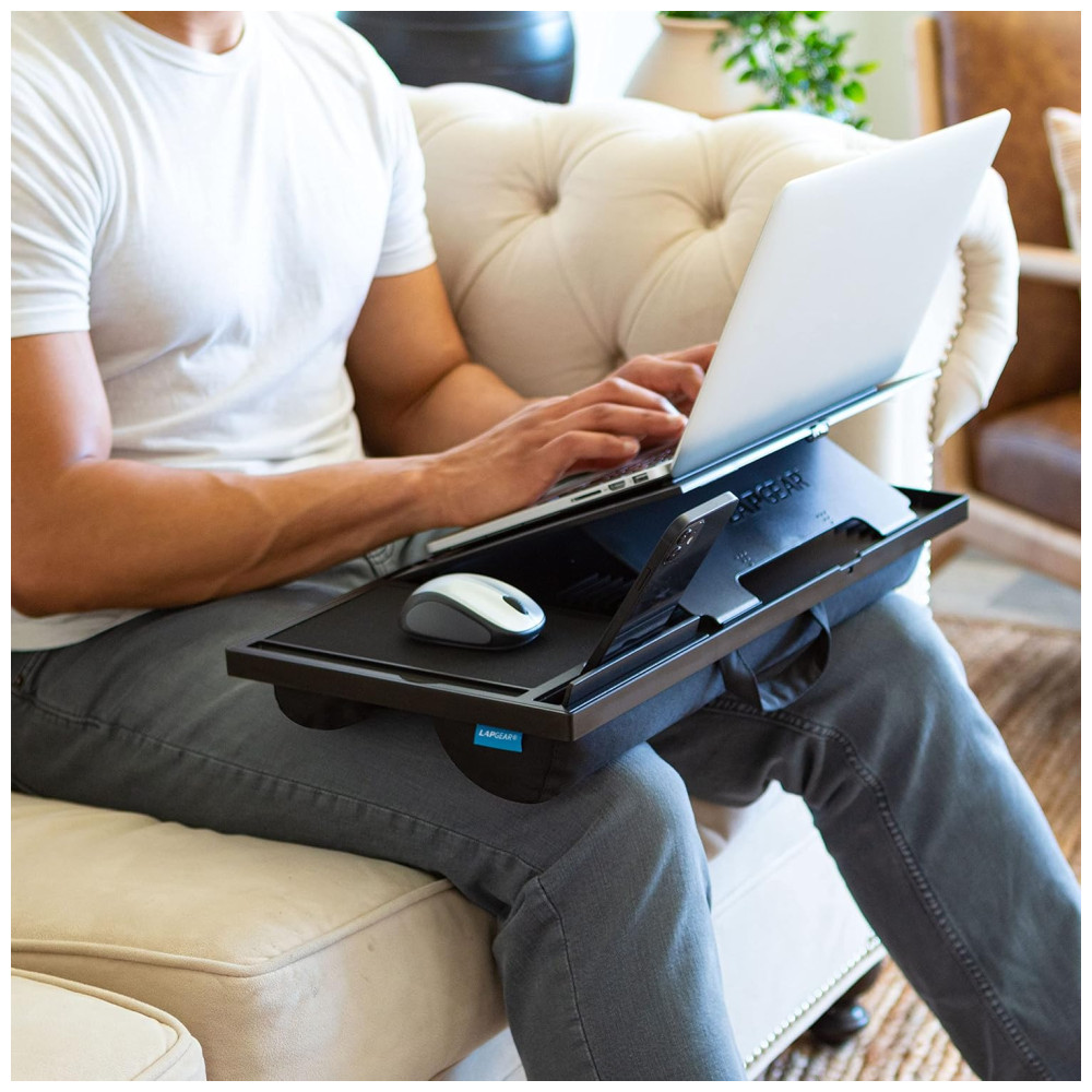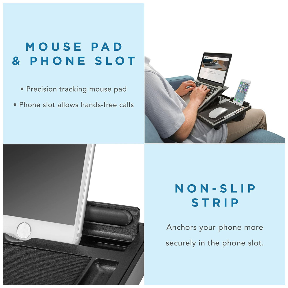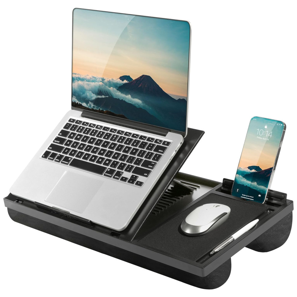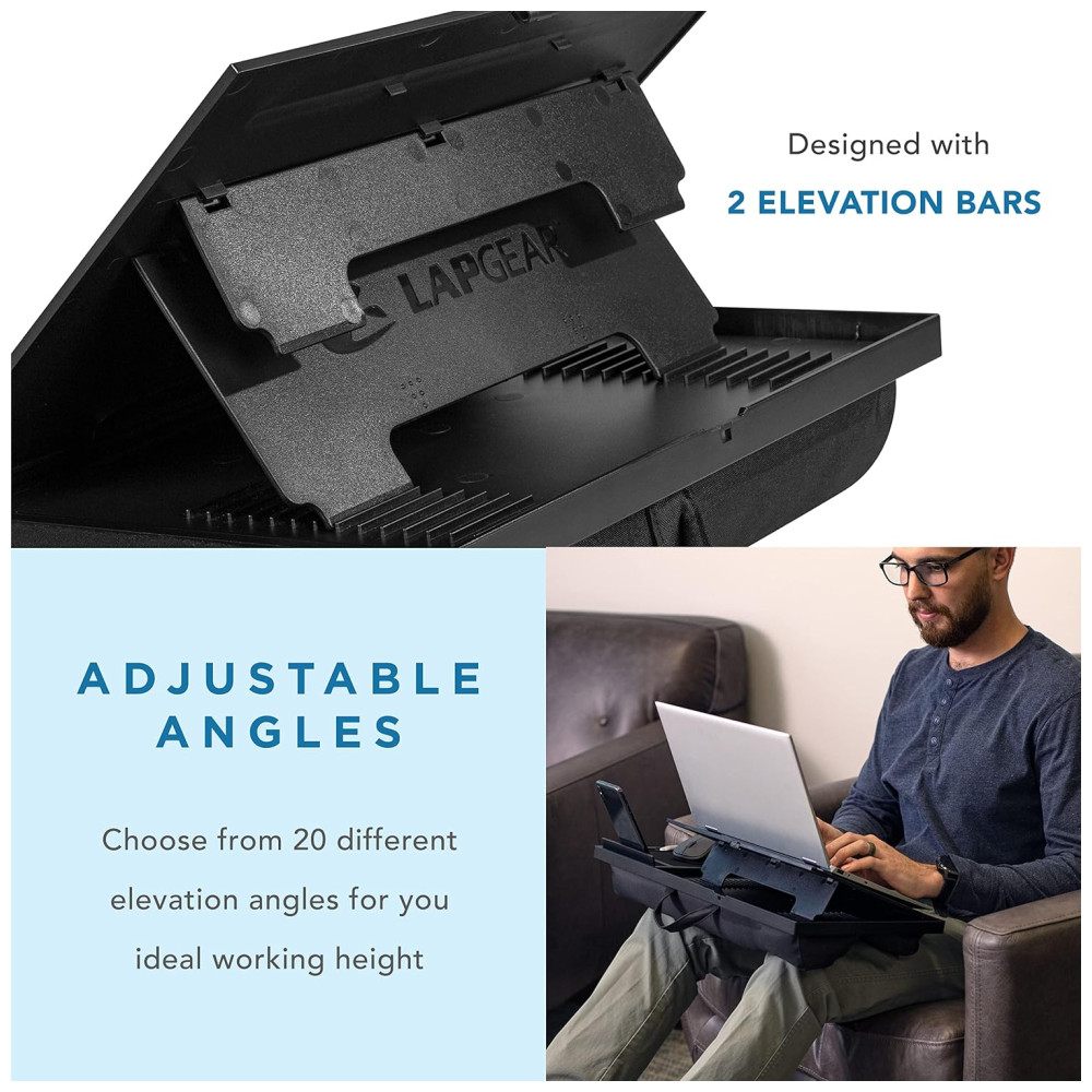 Suporte para laptop Ergo Pro Mesa de colo com 20 ângulos ajustáveis mouse pad e suporte para telefone preto LAPGEAR 49408 Preto