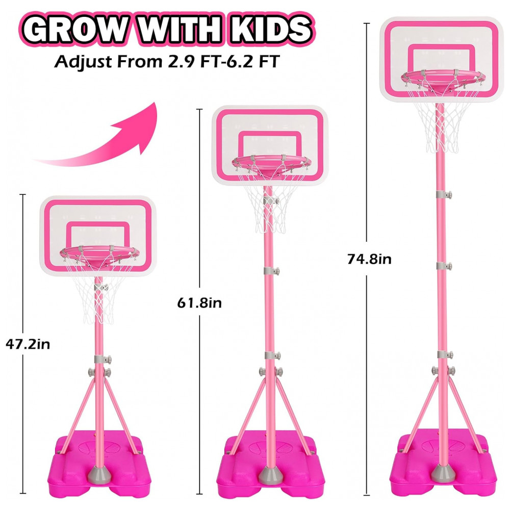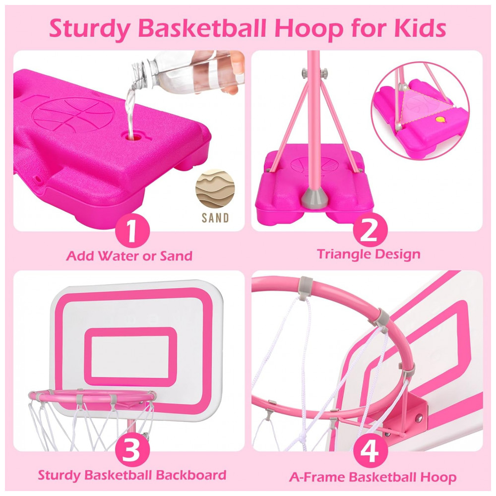 Tabela de basquete infantil ajustável Tsomtto rosa 2011P estrutura em aço e plástico altura regulável para crianças
