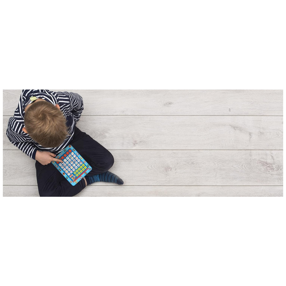 A criança pode apertar o botão do quiz, procurar a imagem correspondente e responder com um simples clique. O tamanho conveniente do tablet permite fácil transporte para qualquer lugar. O dispositivo oferece aprendizagem de letras, palavras, jogos de ortografia, questionário interativo e introdução à música. Para alimentação, utiliza 3 baterias AAA LR03 de 1,5 V incluídas . O produto é recomendado para crianças a partir de 3 anos e foi projetado e desenvolvido na Europa.