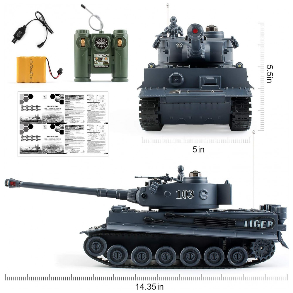 Tanque Alemão da Segunda Guerra Mundial com Controle Remoto e Scala 1:28 BEAURE Cinza