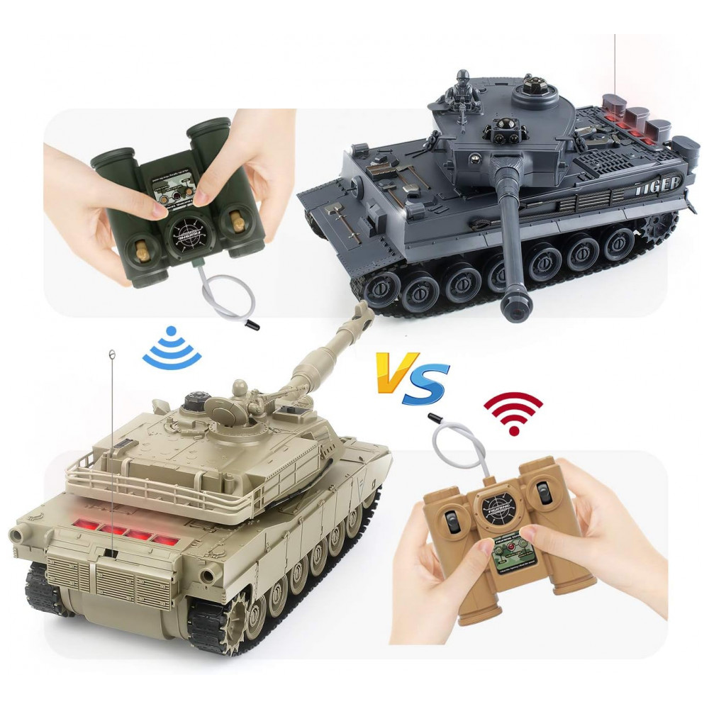 Tanque americano M1A2 com controle remoto e detalhes de alto nível é uma excelente opção para quem procura um modelo de tanque militar para colecionar ou para brincar com os amigos. Com combate infravermelho, o tanque M1A2 pode lutar contra o tanque alemão Tiger em uma emocionante batalha. Cada tanque tem três vidas em cada jogo, proporcionando muitas horas de diversão.