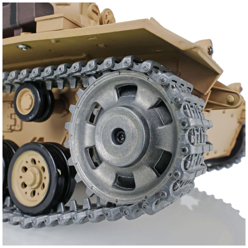 O produto também possui um sistema de controle de rádio de 2,4 GHz que suporta muitos tanques semelhantes combatendo juntos sem intervenção de rádio, além de uma caixa de engrenagens de condução de aço. A versão de plástico vem com suspensão de roda de metal. É importante notar que talvez não seja possível enviar líquido para alguns países.