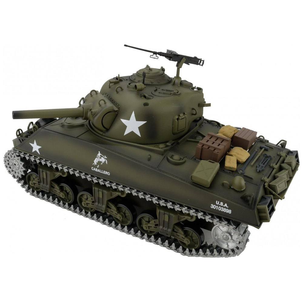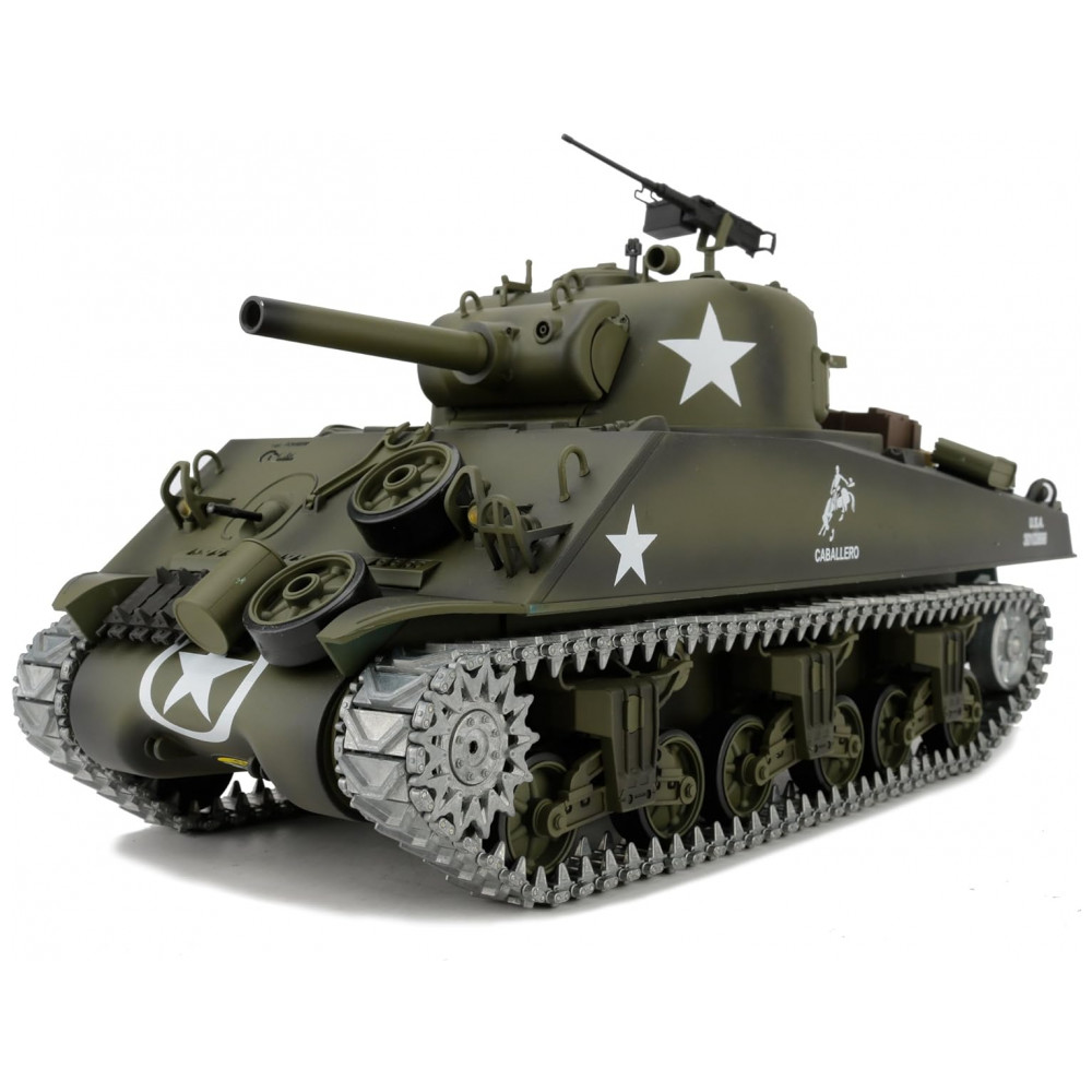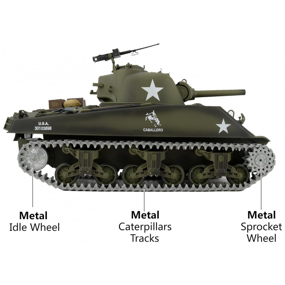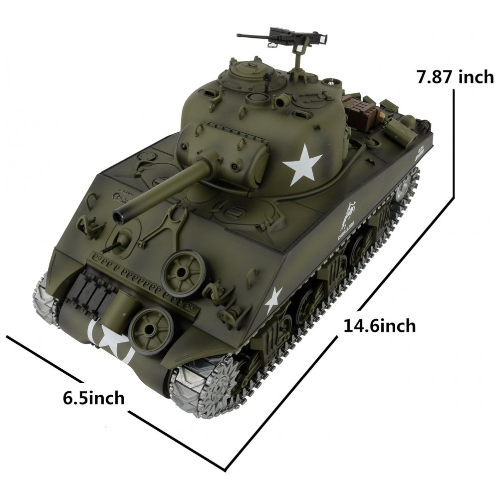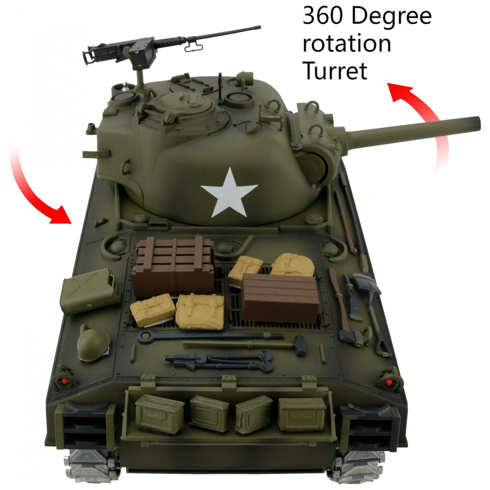 Tanque Militar M4A3 Sherman de Controle Remoto com Torre Giratória de 360 Graus e Frequência de 2.4GHz Heng Long