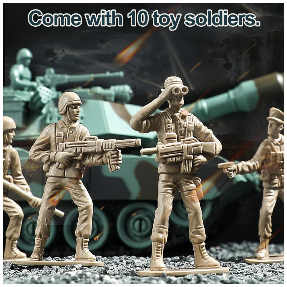 Esse tanque militar realista em escala 128 dos EUA vem completo com um belo corpo de camuflagem e detalhes premium para uma aparência autêntica. Com controle remoto sem interferência de 2,4 GHz, o alcance do controle remoto pode atingir até 49,85 metros e permitir que vários tanques de controle remoto lutem entre si. Com 9 funções, incluindo sons e luzes, você pode facilmente comandar o tanque de brinquedo para avançar, retroceder, virar à esquerda e à direita, girar a torre e lançar o canhão de raios infravermelhos. Este tanque de controle remoto também vem com 10 brinquedos de soldado de qualidade, proporcionando uma oportunidade para brincadeiras imaginativas e um campo de batalha expandido. É um excelente presente para fãs militares ou crianças de 6 anos ou mais, e é um presente ideal para ocasiões especiais como aniversários, Natal ou outros feriados.