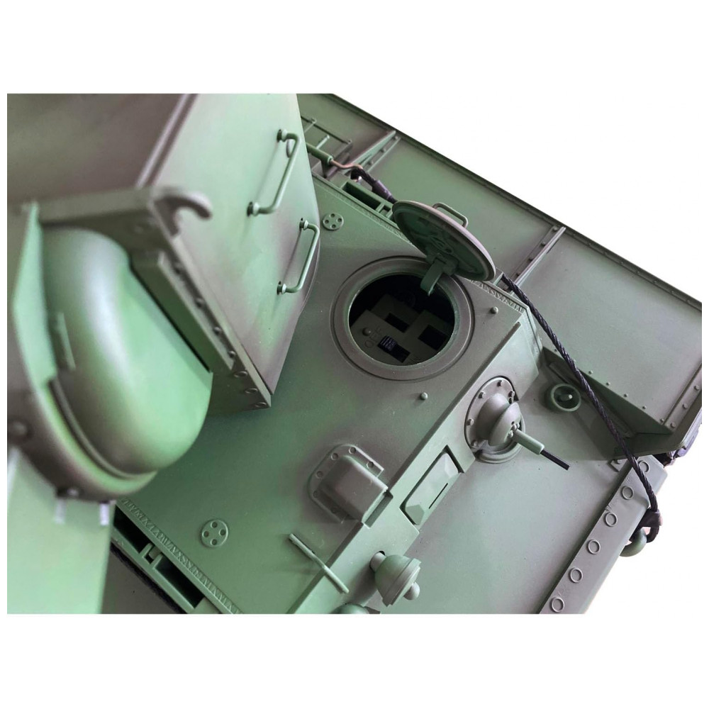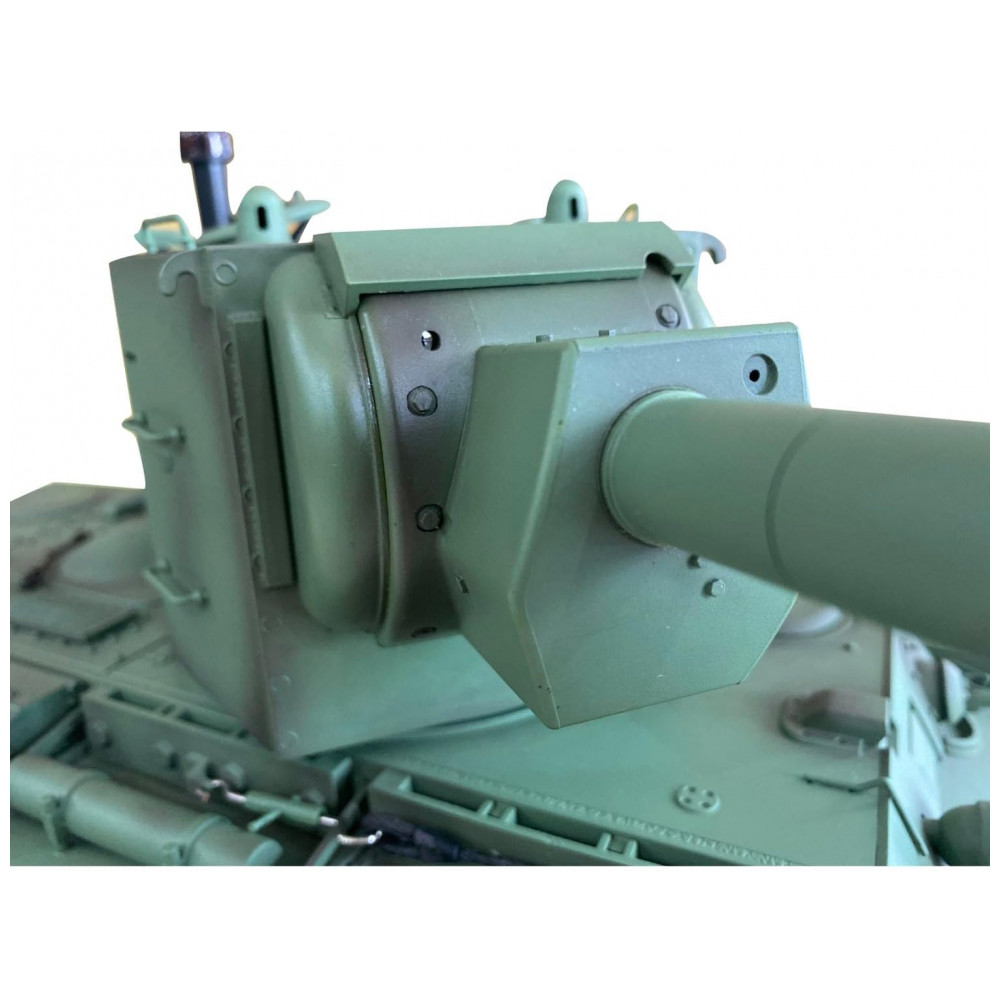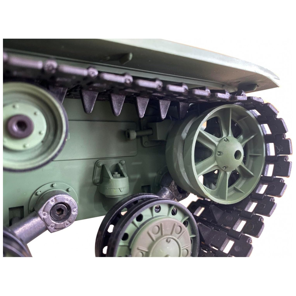 O sistema de combate infravermelho suporta muitos jogadores no combate em uma guerra de tanques e a torre gira quase 340 graus. O cano se move para cima e para baixo quase 30 graus e o tanque dispara pellets BB de 6 mm com ação legal de recuo do casco. A placa-mãe 7.0 oferece 2 sons para opção e luzes de tanque emulacionais de LED. Além disso, o tanque apresenta direção pivotante e fumando ocioso, que aumenta gradualmente quando o tanque funciona rápido.