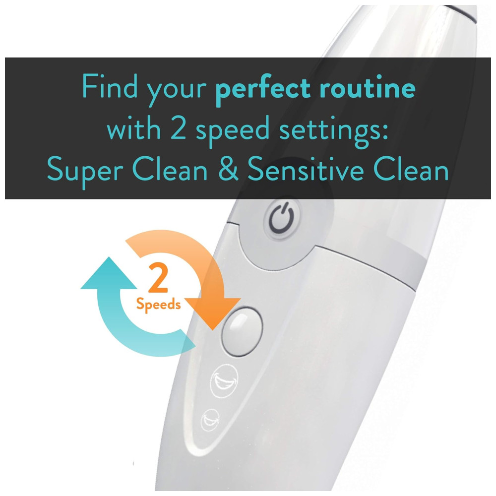 CONFIGURAÇÕES DUPLAS DE VELOCIDADE Escolha a configuração perfeita para sua boca. A escova de dentes TAO Clean tem configurações duplas Super Clean e Sensitive Clean e um cronômetro de 2 minutos que pausa a cada 30 segundos para lembrá lo de passar para a próxima seção de sua boca.