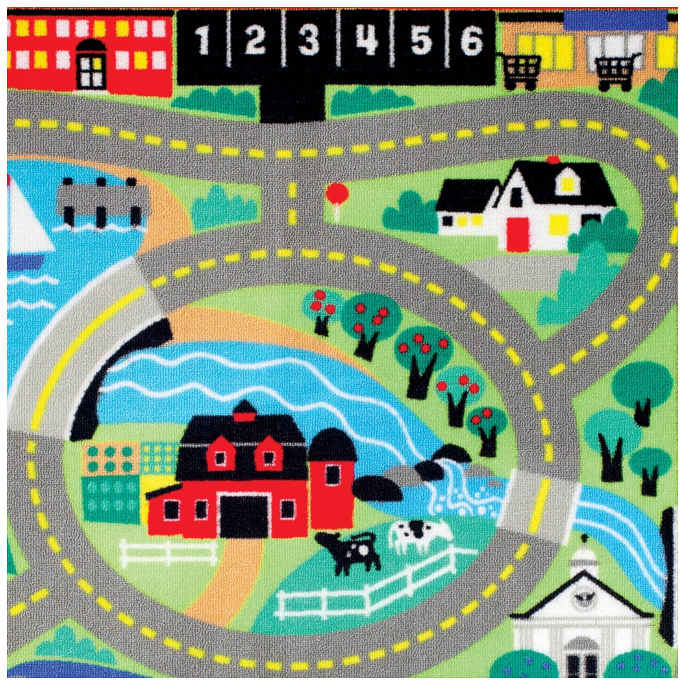 Este tapete de atividades colorido é perfeito para crianças que amam brincar com carros, trens e bonecos. Com um terreno variado, o tapete tecido apresenta uma fazenda cercada por um sistema rodoviário circular que conecta uma escola, um estacionamento, uma mercearia, uma margem do lago e muito mais. O conjunto inclui 4 carros de madeira coloridos que podem navegar por cursos de água, canteiros de obras e escolas, e cada carro pode estacionar em vagas numeradas, o que é ótimo para contar e sequenciar o desenvolvimento de habilidades. O tapete de brincar Pesa 1,59 Quilos. Feito de materiais duráveis, pode ser lavado na máquina para fácil limpeza. O tapete de brincar possui um suporte antiderrapante que é seguro para uso em todas as superfícies do piso. O conjunto de tapete de estrada redondo da cidade é um presente ideal para crianças de 3 a 8 anos.