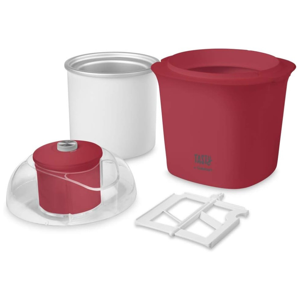 Cor Vermelho Estilo Sorveteira. O sorvete é o favorito dos americanos e agora você pode fazer qualquer sabor que quiser, um litro e meio de cada vez Esta sorveteira é totalmente automática tudo que você precisa fazer é adicionar seus ingredientes. Pense fora da caixa Aquele bico de enchimento grande implora por punhados de biscoitos esmagados ou palitos de hortelã pimenta, nozes, gotas de chocolate. O que seu paladar desejar. Imaginação nas férias Abra o livreto de receitas Tasty está carregado de boas ideias. E se o sorvete de repente parecer muito rico, vá para os iogurtes congelados