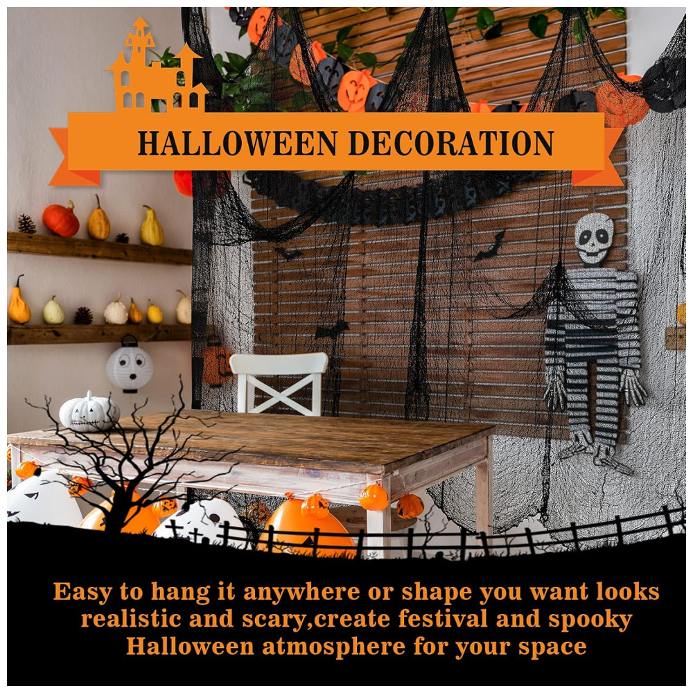 Cena de terror: Tecido para decorações de Halloween: gaze assustadora que pode ser cortada e rasgada à vontade. Pendure em janelas, cortinas e tetos para tornar sua casa mais parecida com uma casa mal assombrada.