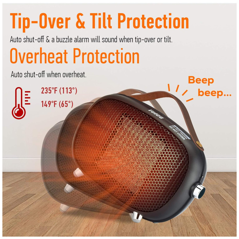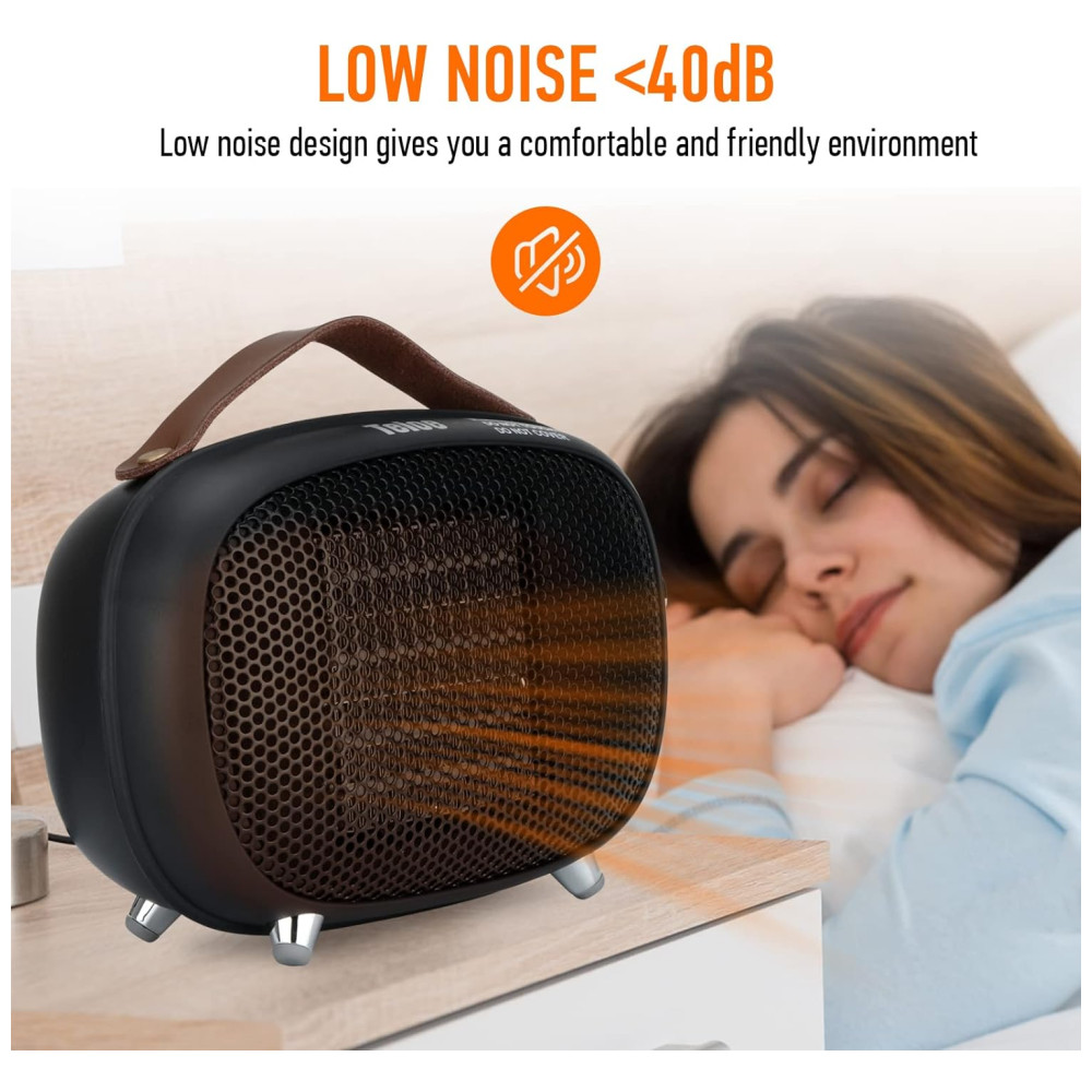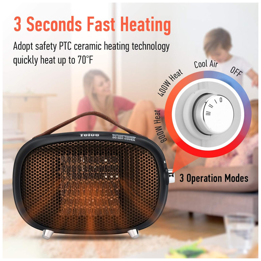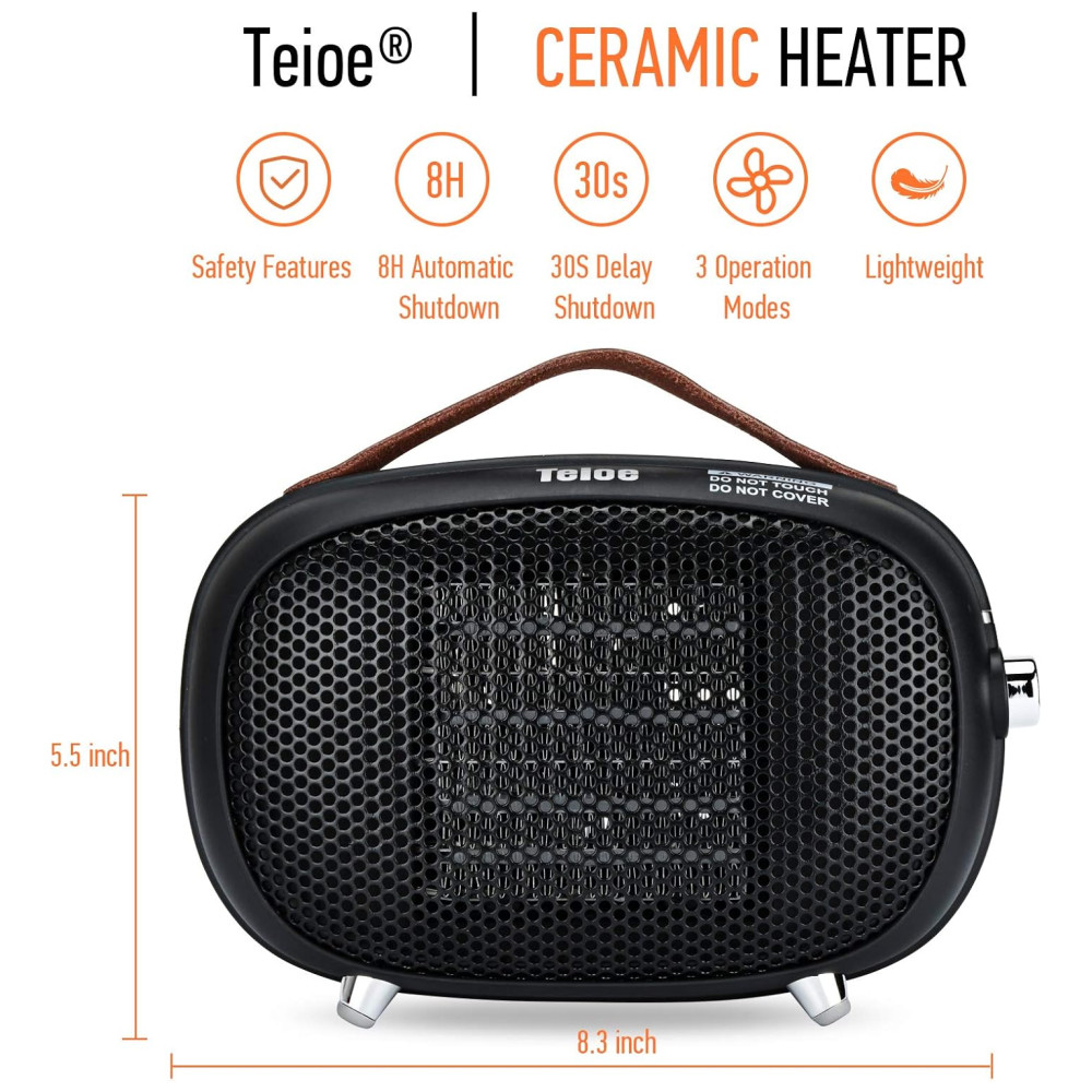 AQUECIMENTO RÁPIDO E PODEROSO Equipado com elementos de aquecimento de cerâmica avançados, o aquecedor de ambiente pequeno Teioe fornece aquecimento mais rápido e com maior eficiência energética. Este aquecedor elétrico de ambiente aquece até 21 C em 3 segundos, perfeito para uso em quarto, escritório e mesa.