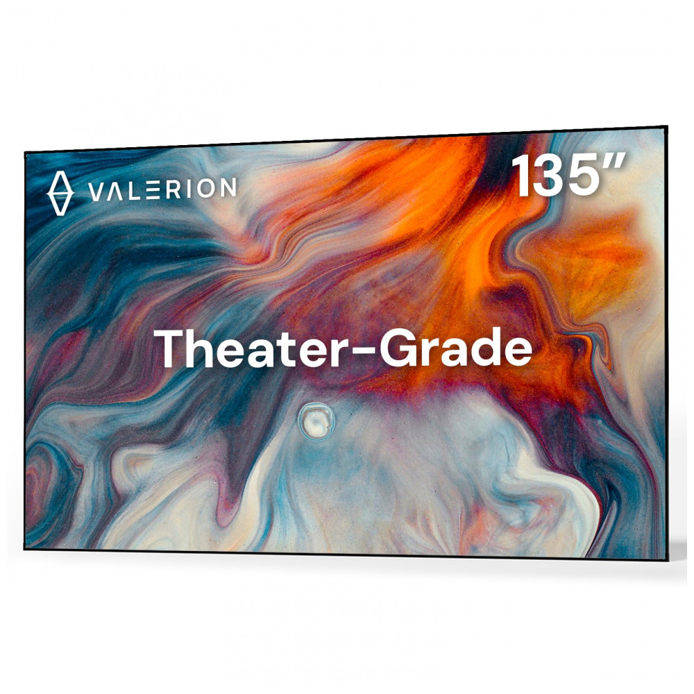 A tela de projeção fixa Valerion de 135″ é um modelo de moldura fixa para instalação em parede, indicada para salas de estar, home theater, salas de reunião e ambientes de entretenimento que exigem imagem de grande formato. A superfície branca fosca em PVC com ganho de 1,3 foi projetada para aumentar o brilho percebido e o contraste, mantendo uniformidade e evitando hotspots, oferecendo excelente desempenho com projetores 4K e 8K em ambientes de iluminação controlada.