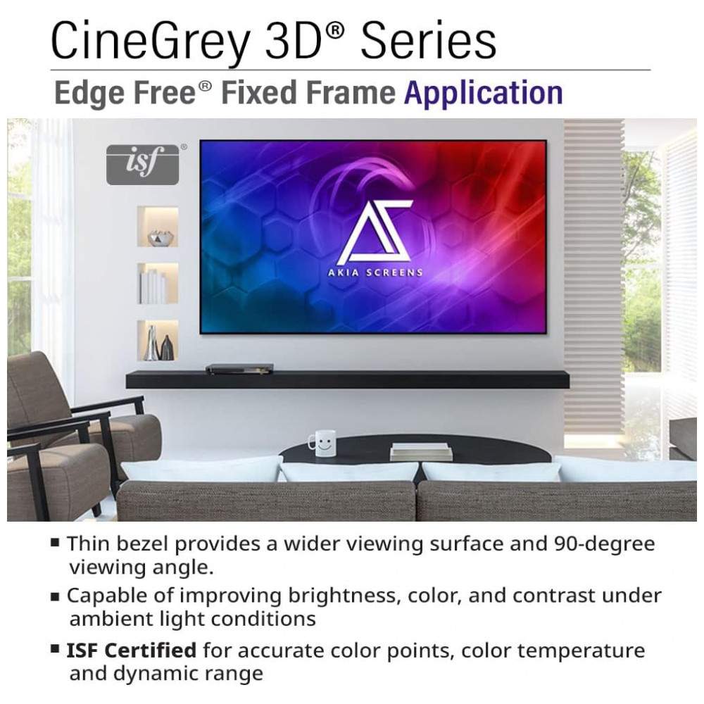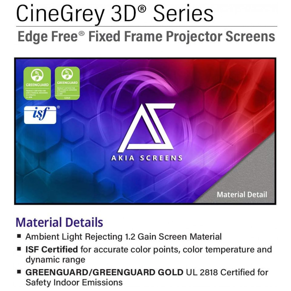 Tela de projeção fixa ALR 103″ 16:9 Akia Screens CineGrey 3D cinza borda infinita para projetor longo alcance