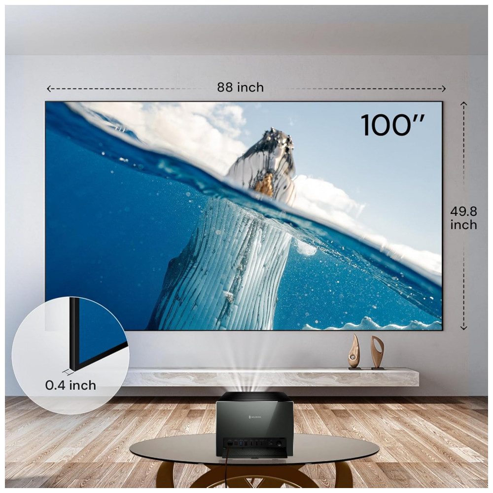 A tecnologia de rejeição de luz ambiente foi desenvolvida para bloquear grande parte da luz proveniente do teto e das laterais, permitindo uso em salas com janelas e luminárias sem necessidade de escurecimento completo. A tela oferece até 85% de rejeição de luz ambiente, o que contribui para manter a nitidez da imagem em sessões de filmes, esportes, jogos e apresentações durante o dia ou à noite.