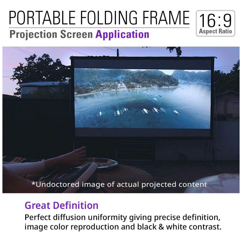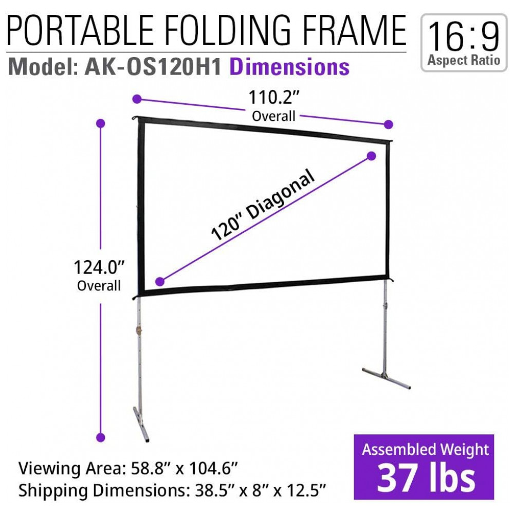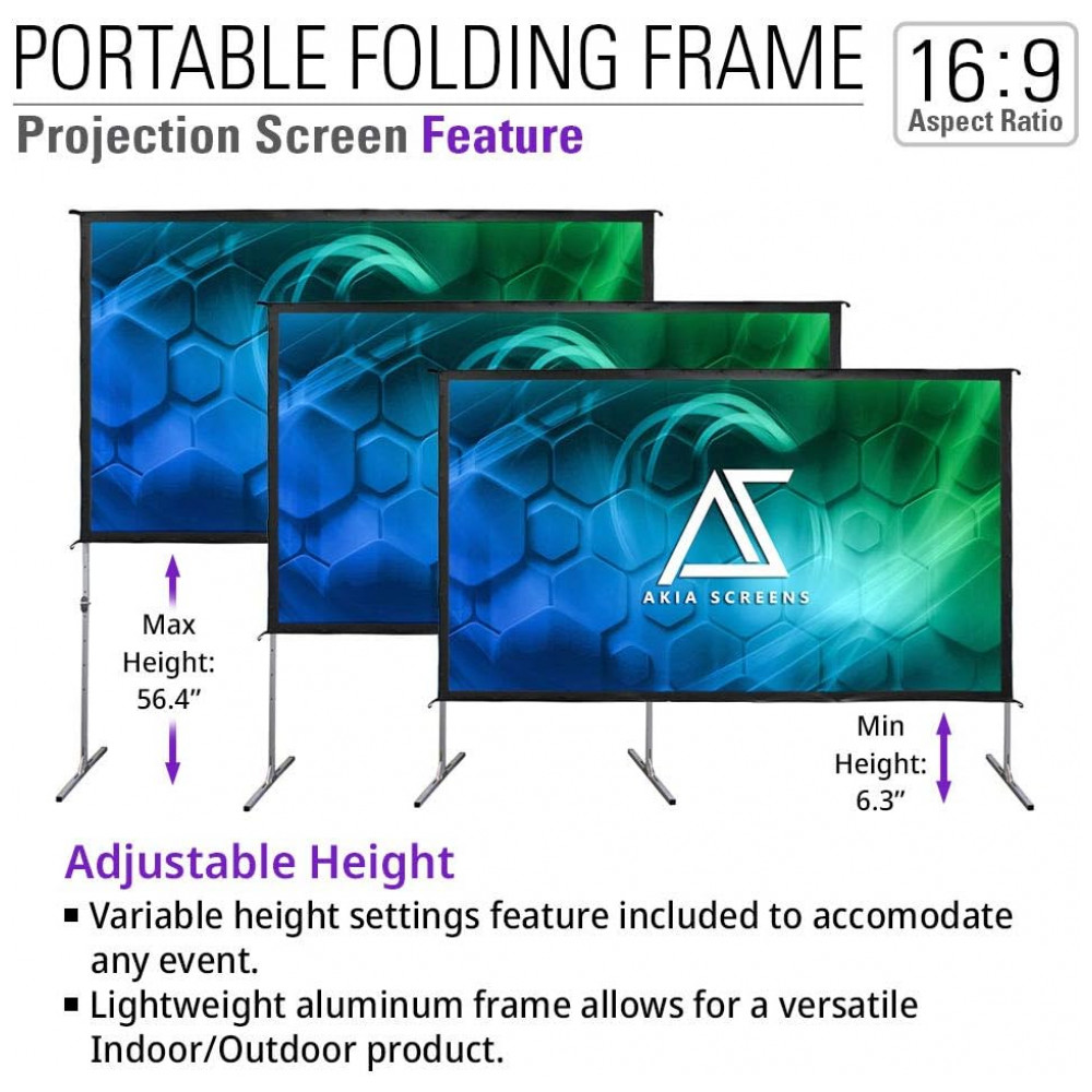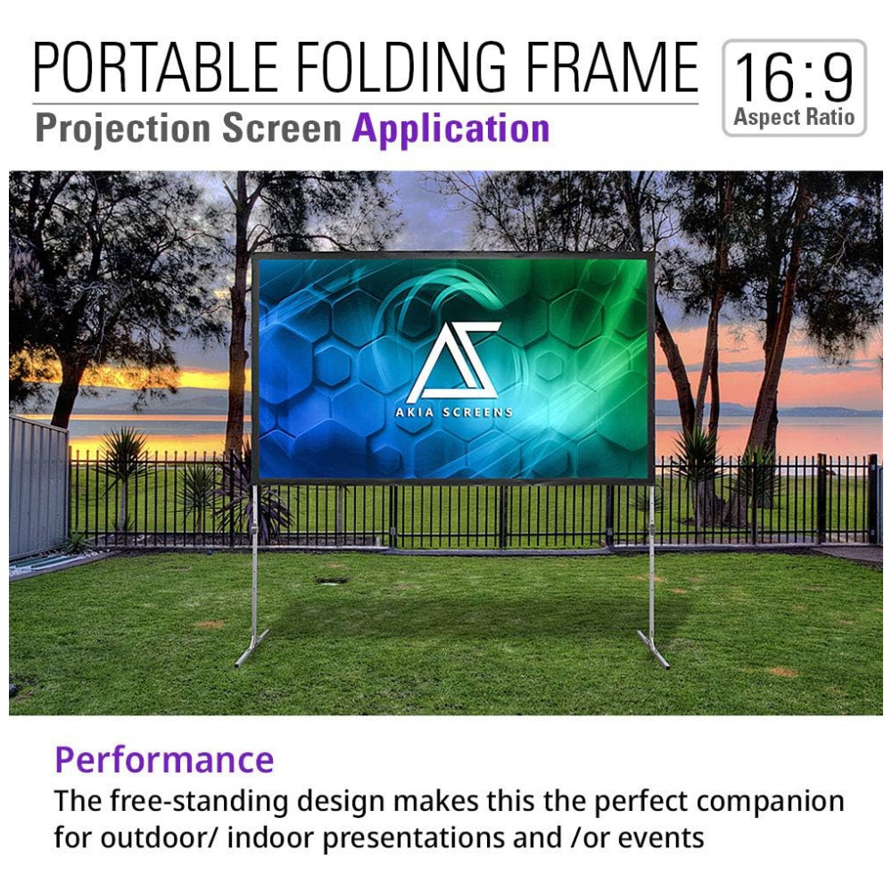 Tela de projeção portátil 120″ AKIA SCREENS branca 16:9 estrutura dobrável ajustável para uso interno e externo