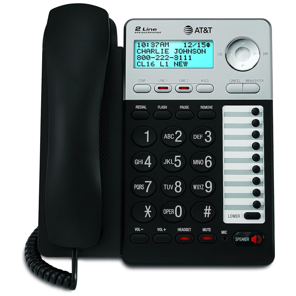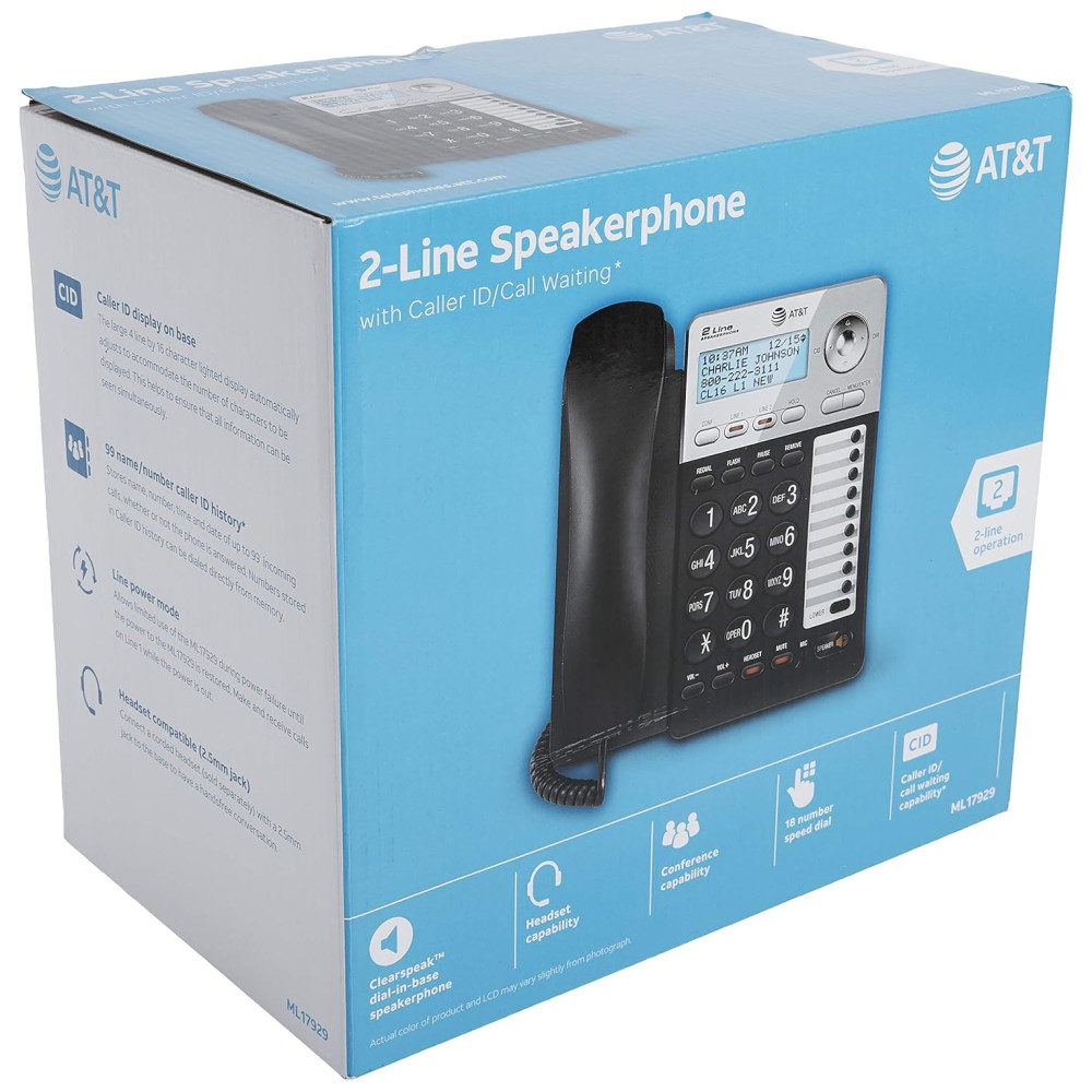 Telefone AT T ML17929 Telefone Com Fio de 2 Linhas Preto