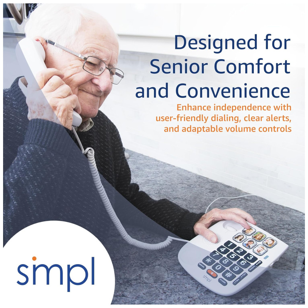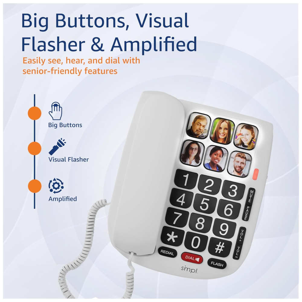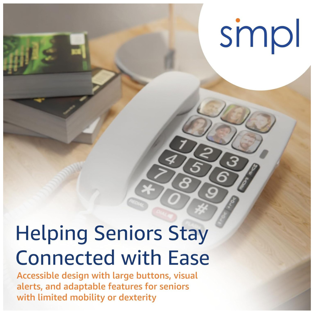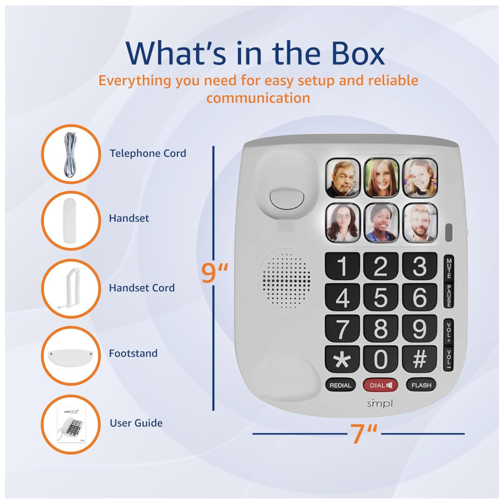 Telefone com Fio Memória de Foto Botões Grandes e Volume Alto para Sênior SMPL 56010 Branco