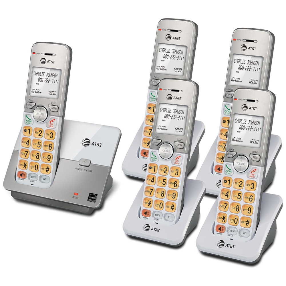 Telefone Residencial Sem Fio AT&T DECT 6.0 com Display LCD e Viva-Voz no Aparelho – 5 Ramais EL51503